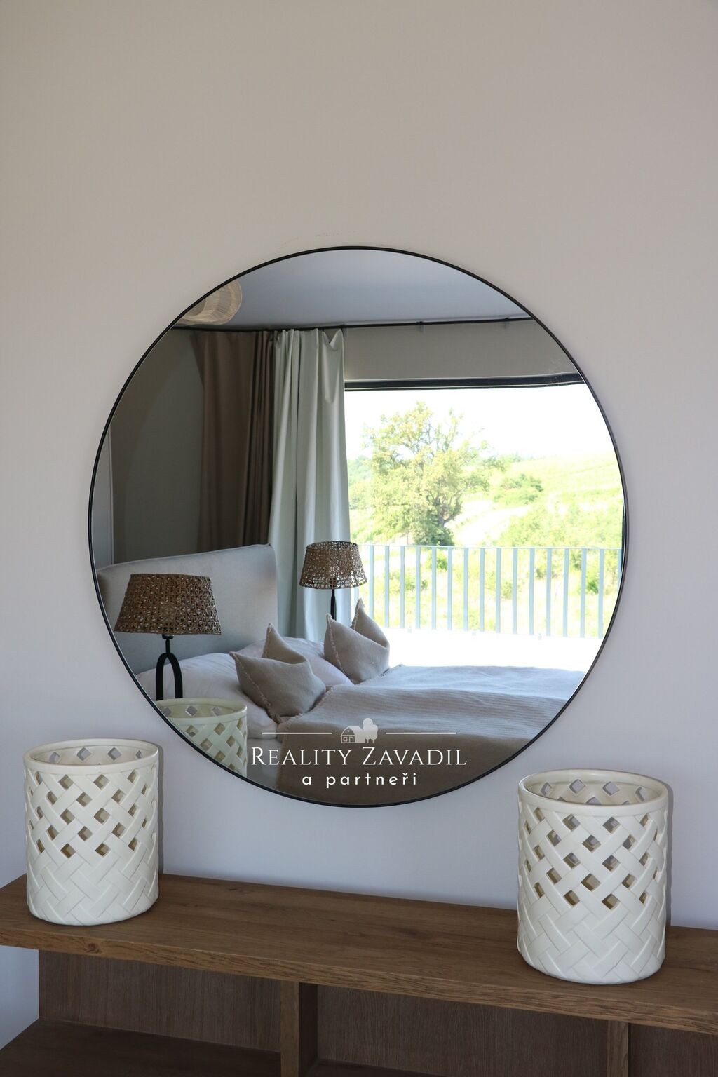 - Degustační místnost – vinotéka, masivní stůl pro 8 osob