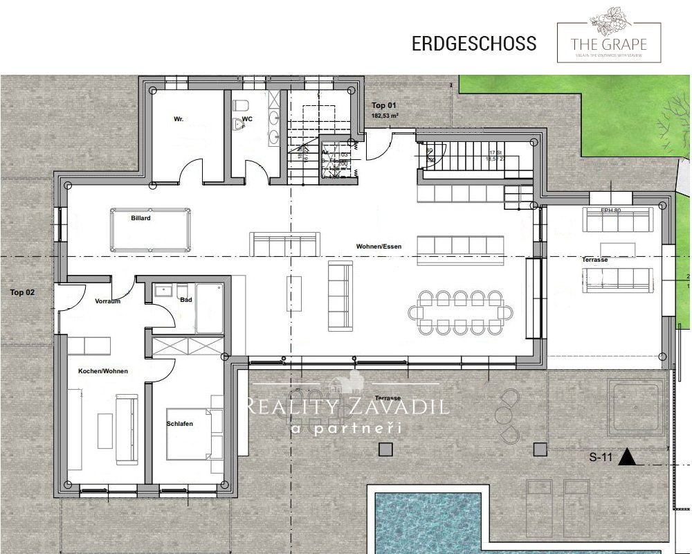 - Infinity bazén – se sluneční terasou, lehátky a slunečníky