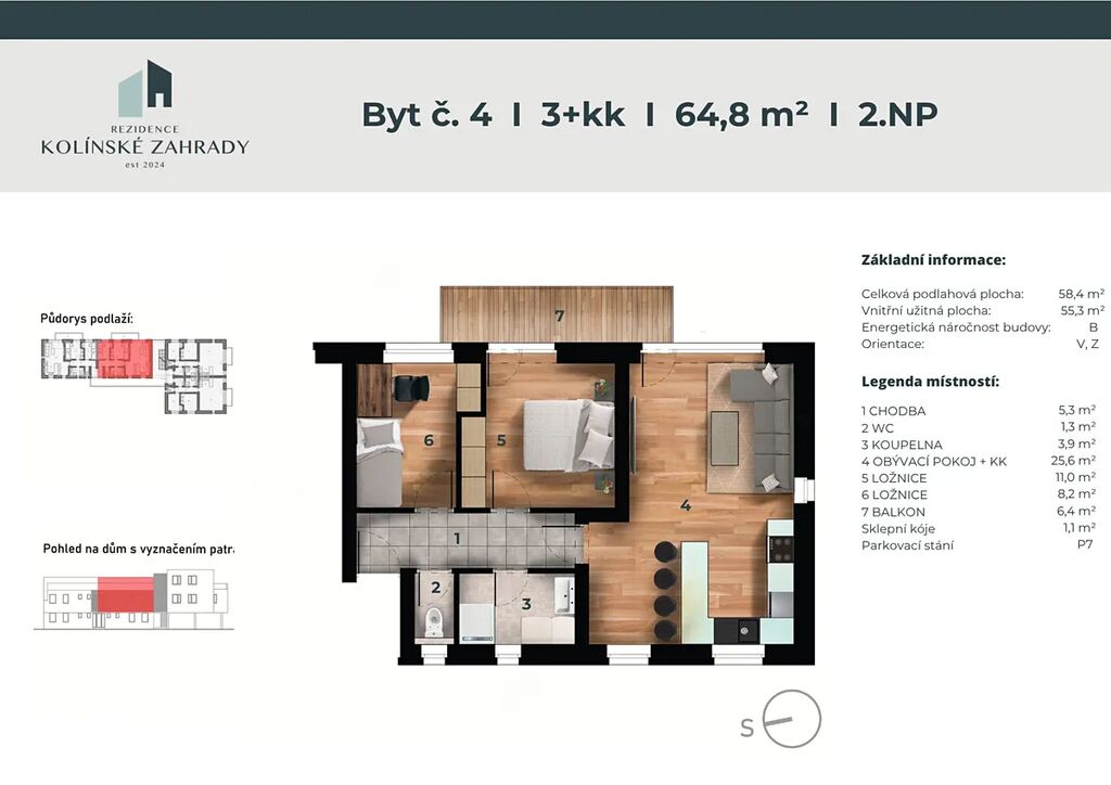 Exkluzivní prodej bytu 3+kk s balkonem, sklepem a dvěma parkovacími stáními – Rezidence Kolínské Zahrady, Kolín.