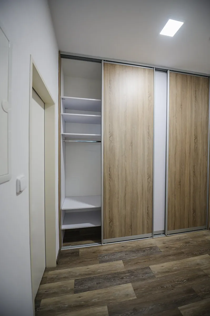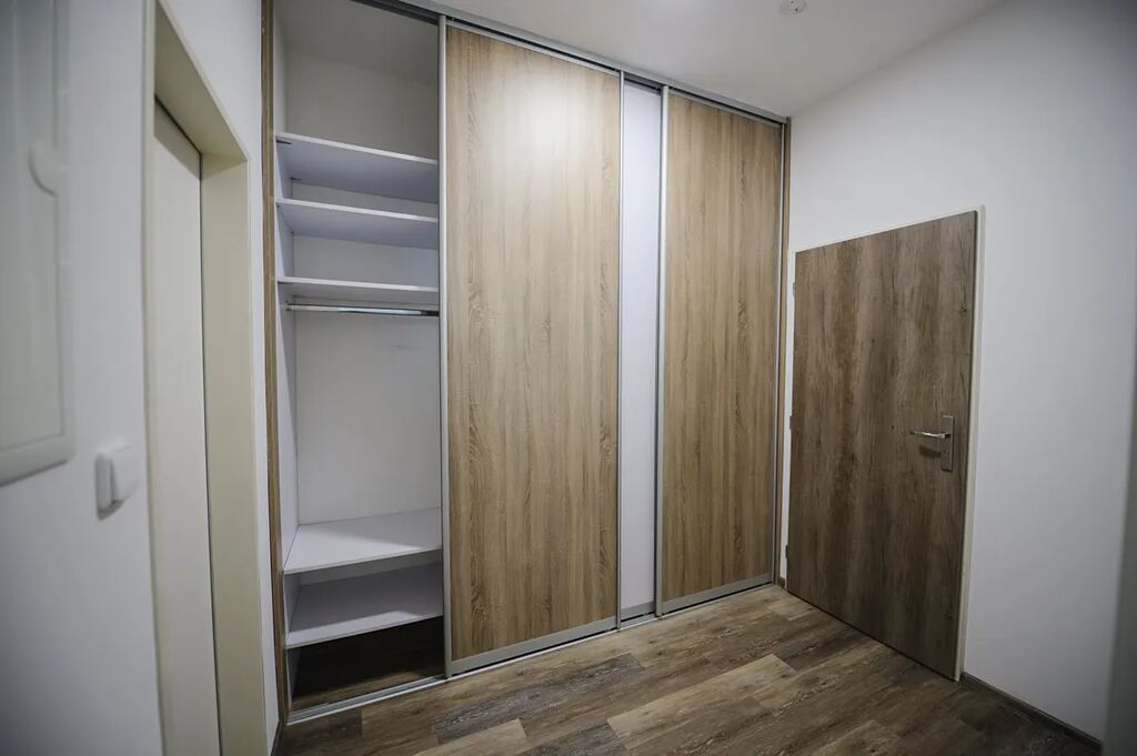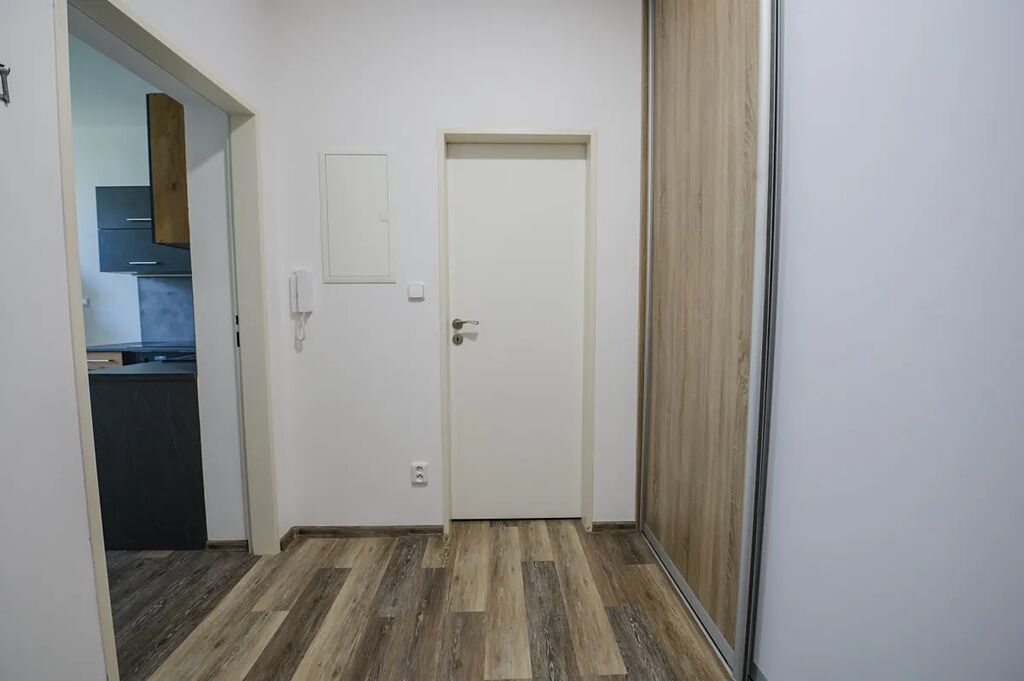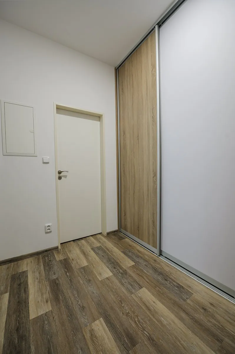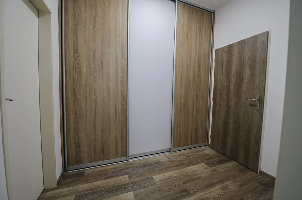 Výměra bytu je cca 70m2 . Po vstupu do bytu je prostorná předsíň se vstupy do koupelny s WC, komory a kuchyně. V předsíni jsou na míru vyrobené vestavěné skříně, kde je mimo úložného prostoru na oblečení i místo na elektrokotel. Koupelna má vanu, umyvadlo a WC, je zde i místo na pračku. Dále je z předsíně vstup do kuchyně, kde je rohová kuchyňská linka s elektrickou indukční varnou deskou, elektrickým sporákem a digestoří. V kuchyni je další komora a vstup do obývacího pokoje. Ložnice je za obývacím pokojem. Byt je orientován do zahrady a má několik oken – byt je tedy světlý a slunný.