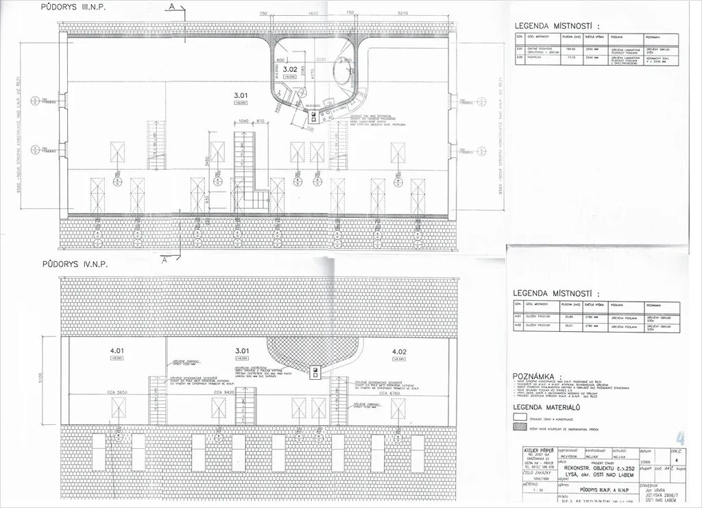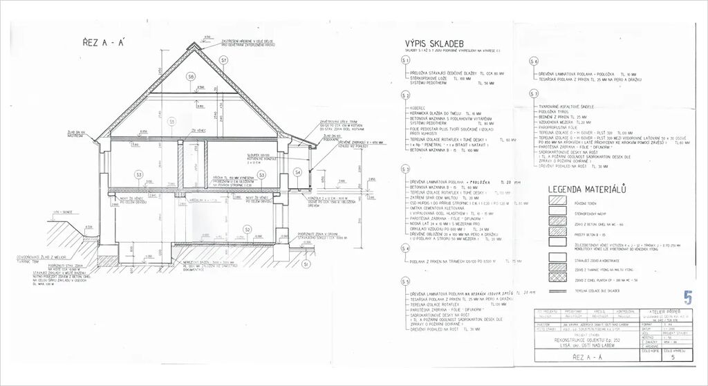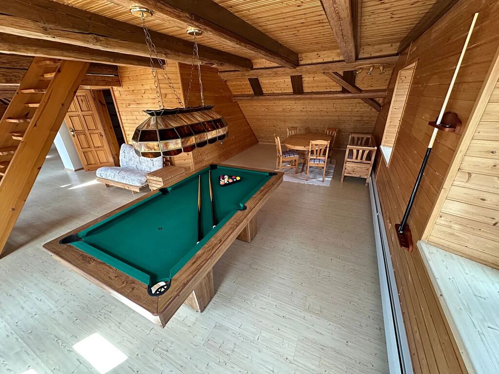 Podkroví – obytné podkroví v celé délce, s koupelnou, kulečníkovým koutem a mezonetem do štítu.