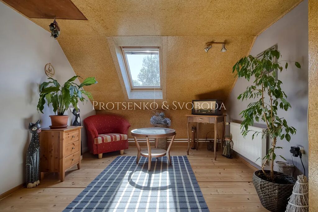 Uvnitř domu vás přivítá obývací pokoj s krbovými kamny, které vnášejí hřejivou atmosféru a pocit skutečného domova. Dvě prostorné garáže nabízejí možnost rozšíření obytné části o další pokoje či ateliér, podle vašich představ. Na pečlivě upraveném pozemku potěší plně funkční udírna pro milovníky poctivé gastronomie, venkovní bazén pro letní osvěžení a samostatný zahradní domek proměněný v privátní wellness zónu s útulnou saunou – ideální místo k odpočinku a regeneraci.