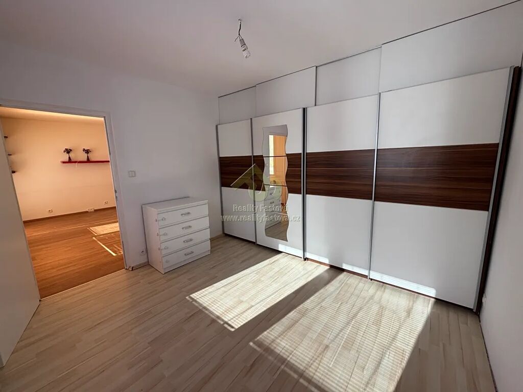 - Z obývacího pokoje se vstupuje do ložnice, kde jsou k dispozici vestavěné šatní skříně