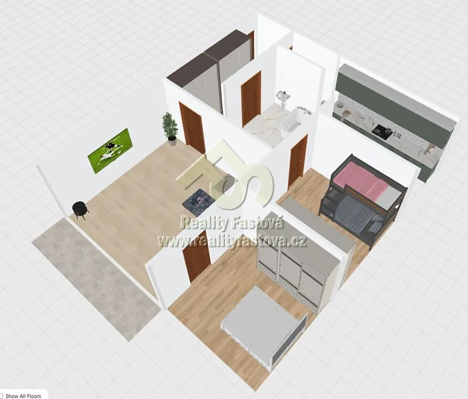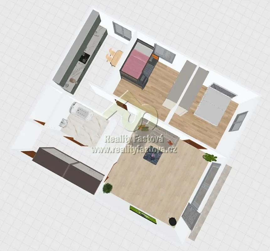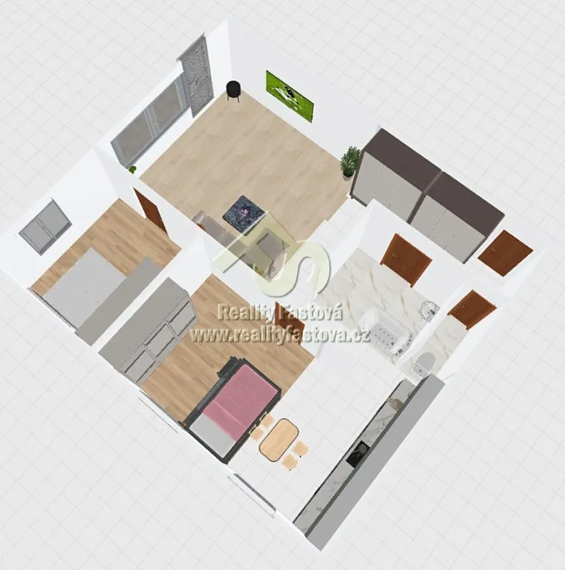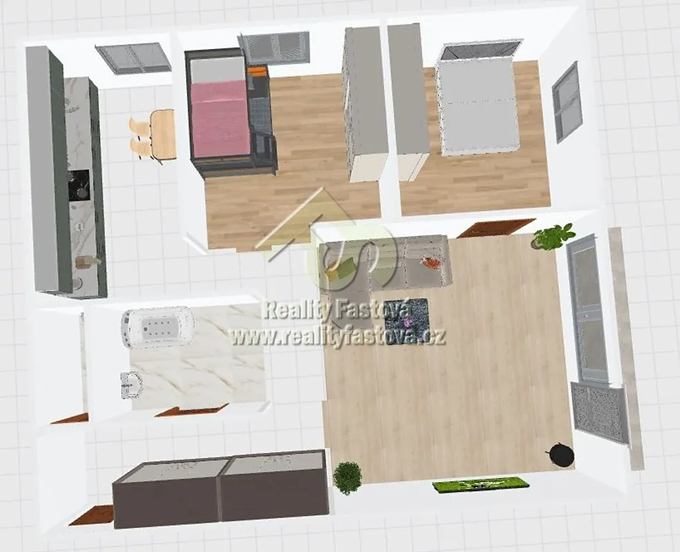 - Dětský pokoj je samostatný, přístupný z chodby a z chodby se dále vstupuje do samostatné kuchyně