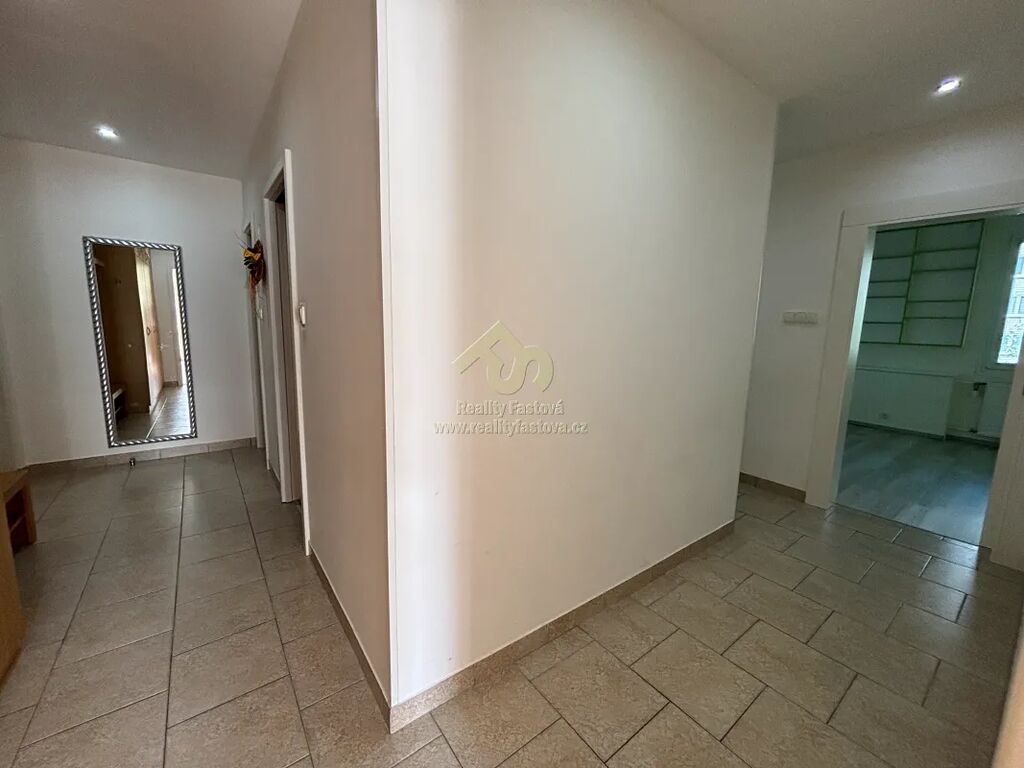 - Vstupem do bytu vejdeme do prostorné chodby s vestavěnými šatními a botními skříněmi. Tato chodba je do tvaru U, obcházející jádro bytu se samostatným WC a samostatnou koupelnou