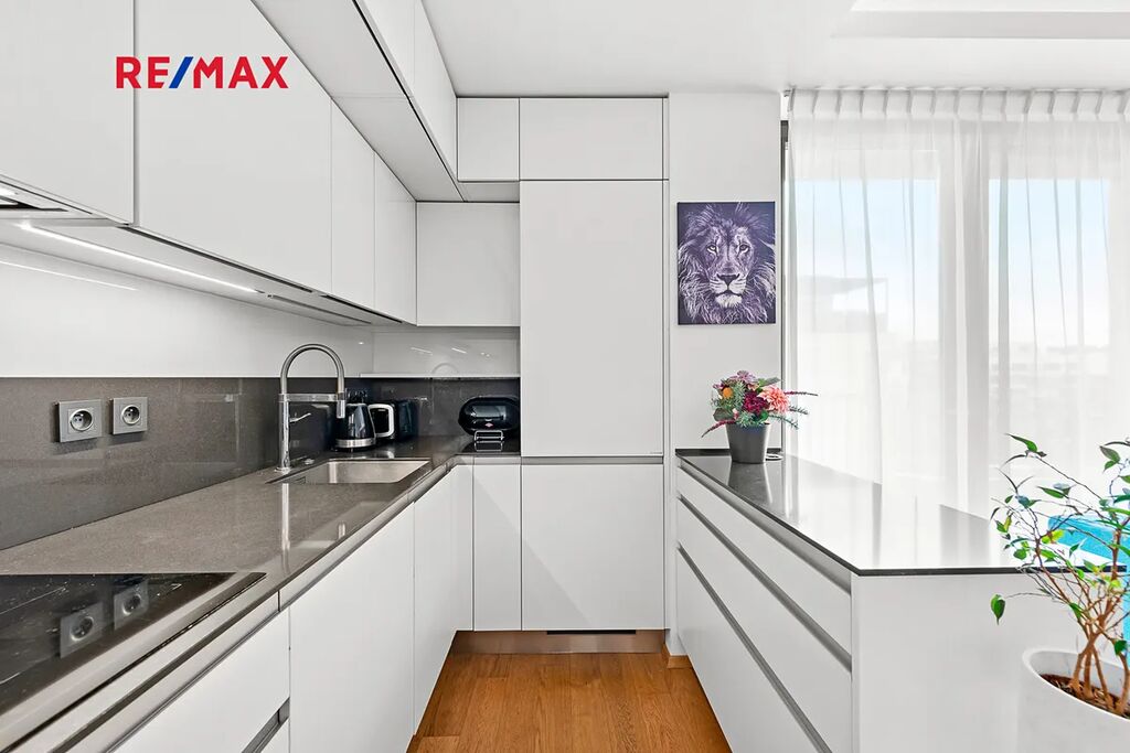 Byt je plně zařízen a nabízí vysoký standard: kvalitní kuchyňská linka a designové vybavení, vestavěné skříně a dostatek úložného prostoru, francouzská okna, orientace na jih a západ, zaručující mnoho slunečního svitu, parketová podlaha z přírodního dřeva a moderní velká koupelna se sprchovým koutem. Konstrukce domu je železobetonová, cihlové zdivo, zateplená fasáda, izolační trojskla, výtah, energeticky úsporné řešení.