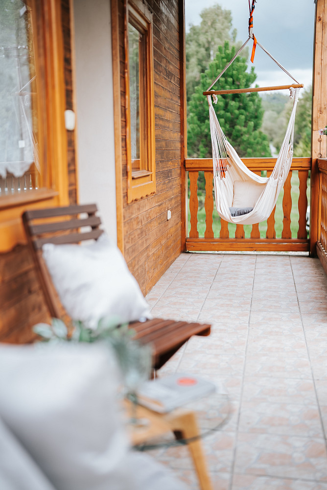 Uzavíratelná terasa + několik venkovních sezení – pozorování lesní zvěře a v neposlední řadě grilování, posezení s knížkou i podzimní hygge.