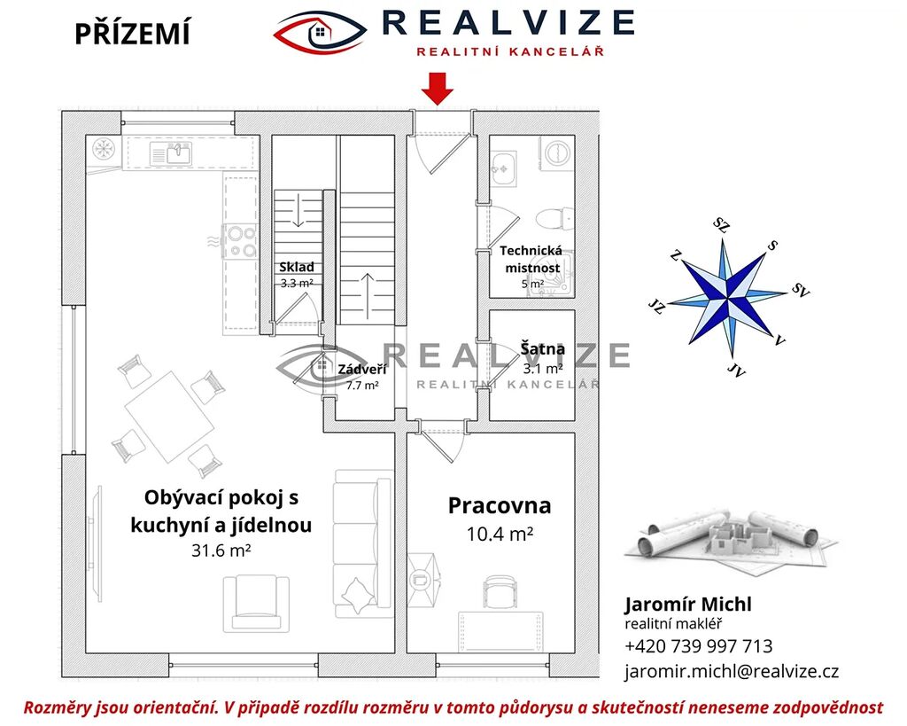 Vizualizace v inzerci slouží jako inspirace pro možné dokončení domu. Výběr materiálů a zařízení lze z části přizpůsobit dle vašeho přání. S financováním vám rádi pomůžeme. Pro více informací a termín prohlídky kontaktujte makléře.