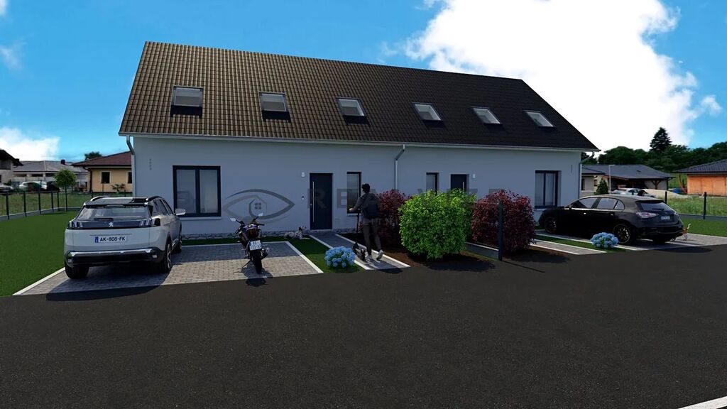 Nabízíme k prodeji pravou polovinu moderního dvojdomu o dispozici 5+1 s užitnou plochou cca 123 m² na pozemku o rozloze cca 433 m², situovanou v klidné části obce Ločenice, přibližně 20 km jižně od Českých Budějovic. Jednotka má vlastní vchod a samostatný pozemek, což zajišťuje dostatek soukromí. Dům bude dokončen na klíč nebo částečně, dle individuálních požadavků zákazníka. Je tedy ideální volbou pro ty, kteří si chtějí přizpůsobit vybavení a vzhled interiéru podle svých představ. Dispozice domu: Přízemí - prostorný obývací pokoj s kuchyňským koutem a jídelnou, pracovna, šatna, sklad, technická místnost se sprchovým koutem a WC. Podkroví: ložnice, dva dětské pokoje, šatna, koupelna a samostatné WC. Inženýrské sítě: elektřina je přivedena k objektu, dům je napojen na obecní vodovod a kanalizaci.