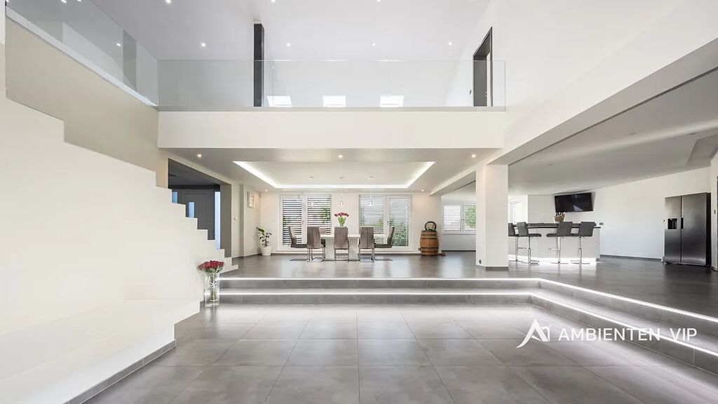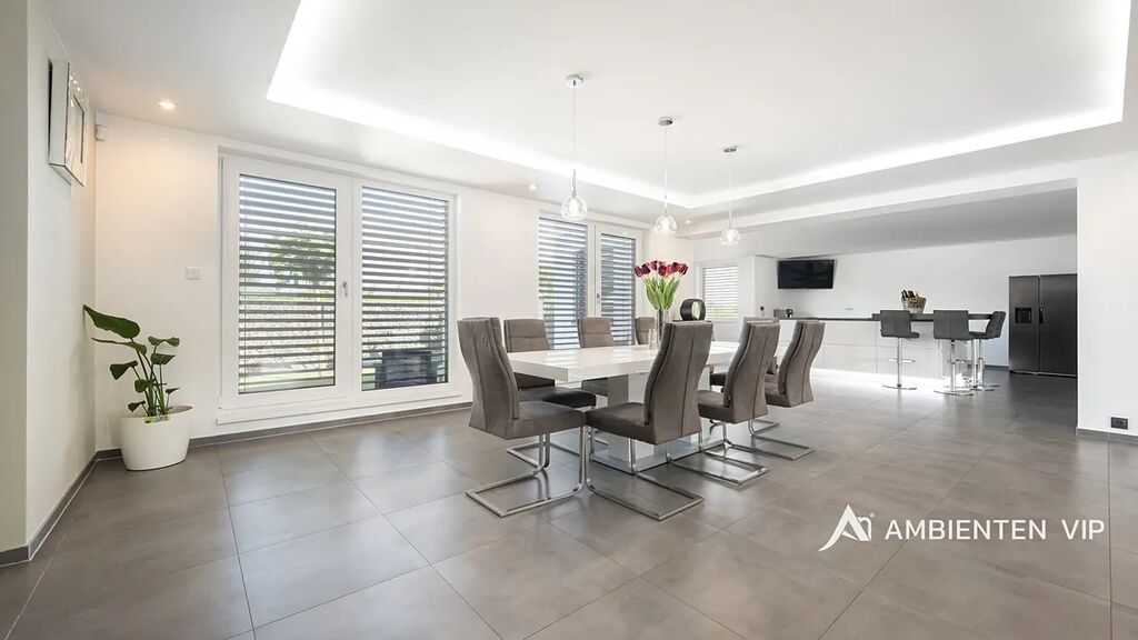 Tato nemovitost představuje mimořádnou příležitost pro klienty hledající prostorné bydlení. Dům je o dispozici 5+kk disponuje nadstandardním obývacím prostorem s jídelnou a kuchyní o velikosti 172 m². Dále se zde nachází čtyři samostatné ložnice, šatny, dvě koupelny a v případě potřeby lze dispozici rozšířit až na 7+kk. Nechybí ani prostorná garáž o velikosti 57 m² a vlastní pozemek umožňující parkování několika desítek vozidel.