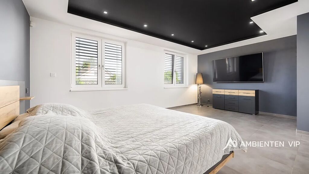 Celý objekt je napojen na fotovoltaickou elektrárnu o výkonu 10 kWh s možností rozšíření až o dalších 30 kWh. Přebytky elektřiny jsou uchovány v bateriích. V každém detailu je patrné, že nemovitost byla navržena s důrazem na funkčnost a komfort – od oddělených technických zón až po přípravu pro další využití prostor.