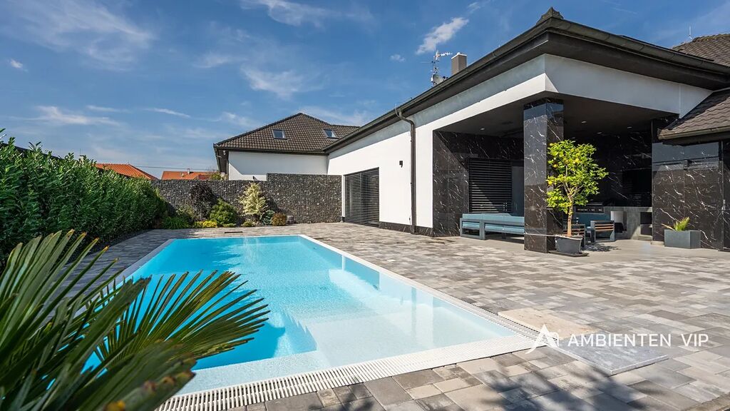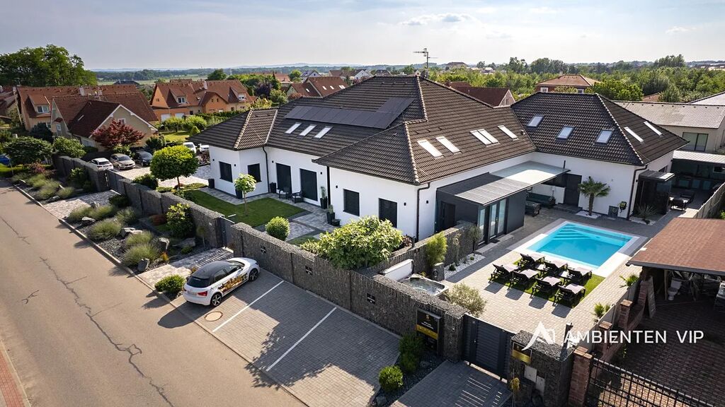 AMBIENTEN VIP exkluzivně nabízí výjimečnou luxusní vilu v obci Šanov na jižní Moravě s provozovaným ubytováním, rozsáhlým wellness zázemím a moderními technologiemi. Objekt o celkové užitné ploše 641,44 m² se nachází na pozemku o velikosti 1552 m².