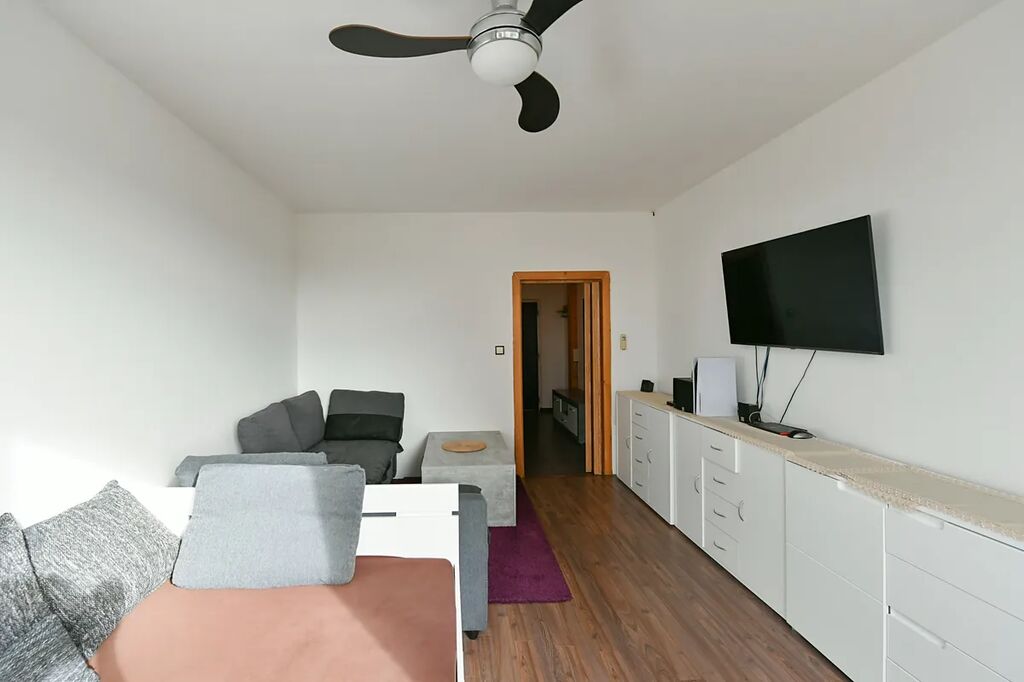 Byt se nachází v 6. nadzemním podlaží (5. patro) revitalizovaného panelového domu s dvěma výtahy a nabízí celkovou podlahovou plochu 51,6 m². Dispozičně je velmi prakticky řešen – oba pokoje jsou neprůchozí, což zajišťuje dostatek soukromí pro všechny obyvatele. Byt prošel v nedávné době renovací – má zděné bytové jádro, plastová okna, novější podlahové krytiny, upravenou koupelnu i vcelku novou kuchyň, a působí tak velmi příjemným dojmem.