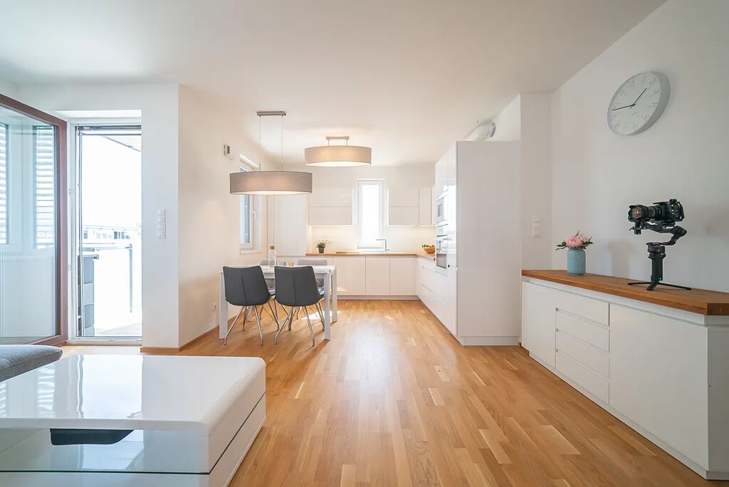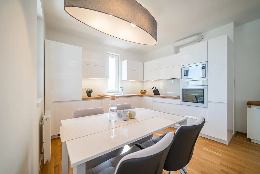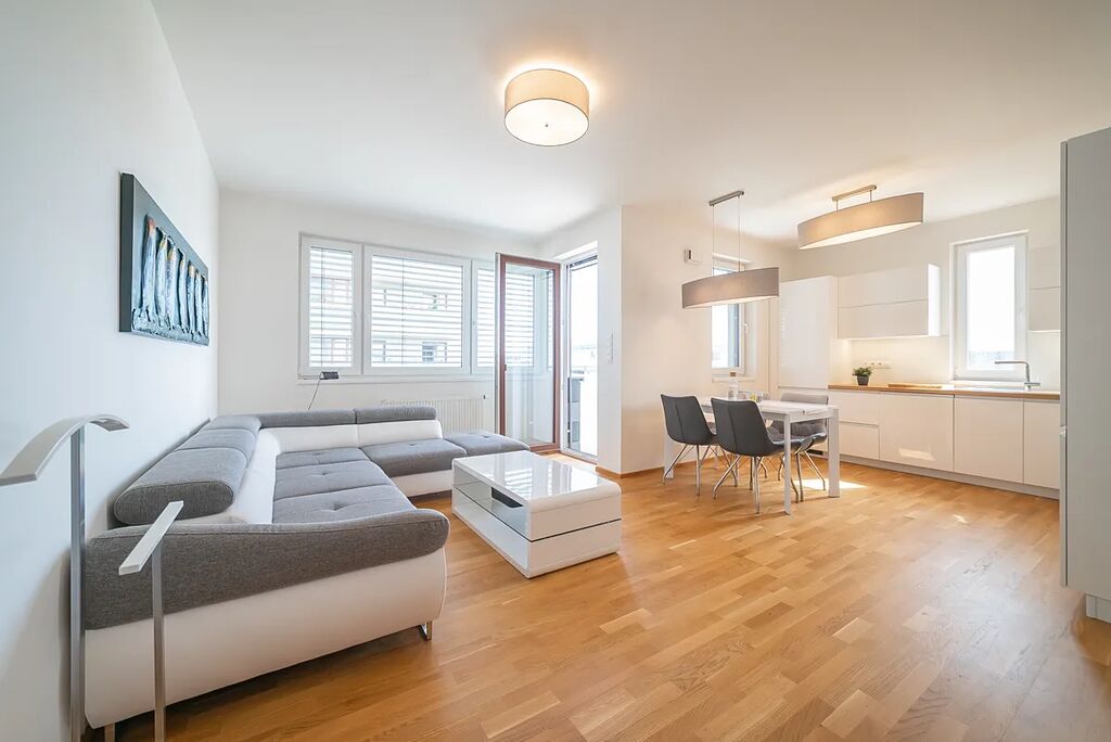 Být se skládá z prostorného obývacího pokoje s kuchyňským koutem. Kuchyňská linka je vybavena kvalitními spotřebiči vč. myčky. Jídelní zóna nabízí stůl pro 4 - 6 osob. Ve společenské zóně najdete rohový gauč, komodu.