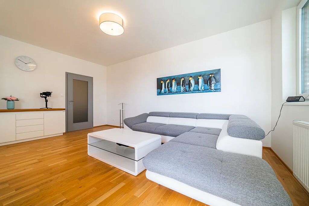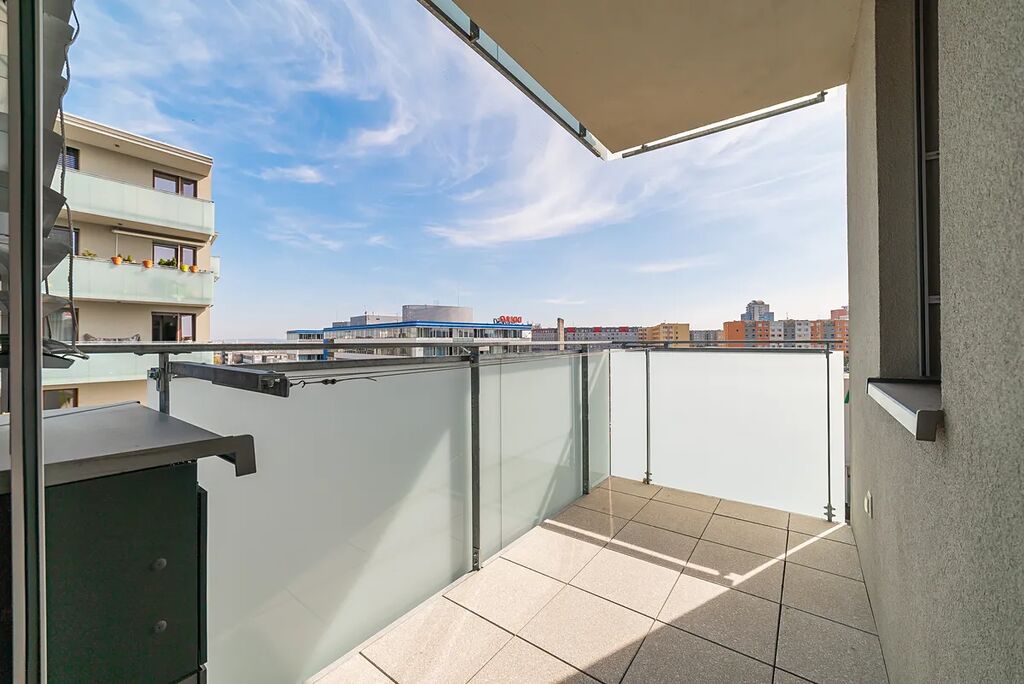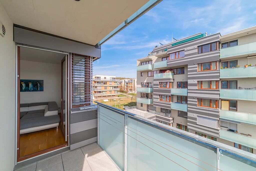 Z obývacího pokoje je přístup na prostorný balkón, který poskytuje příjemné místo k odpočinku.