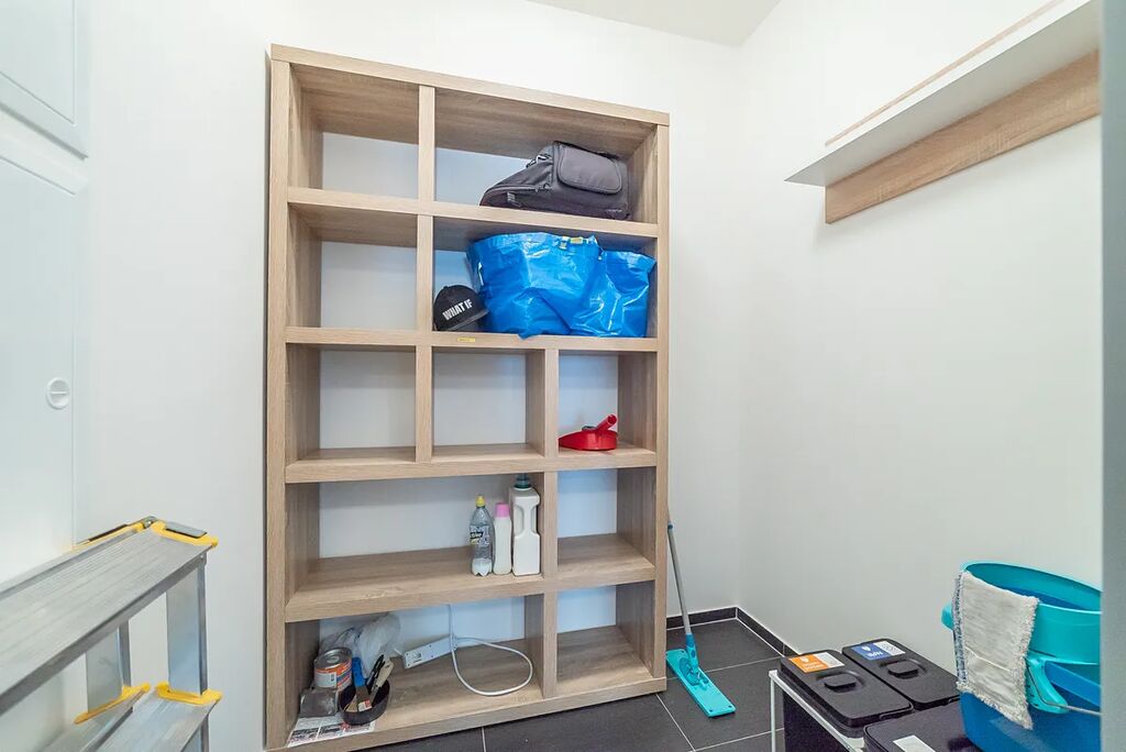 Součástí bytu je také velká komora s regály, ideální pro uložení sezónních věcí.