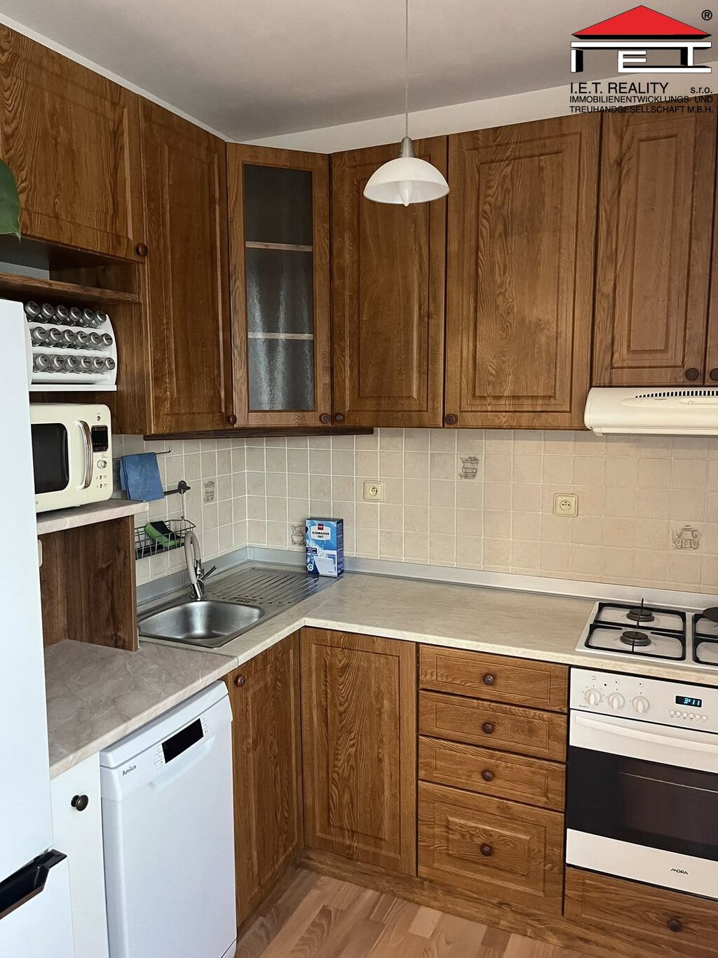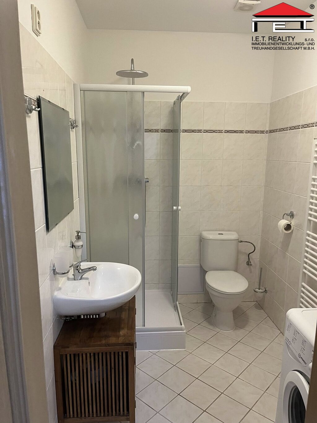 Dispozičně se skládá z předsíně, prostorné kuchyně, kde je vkusná rohová kuchyňská linka se spotřebiči, z kuchyně se pak vchází do pokoje. Koupelna se sprchovým koutem, wc a pračkou.
