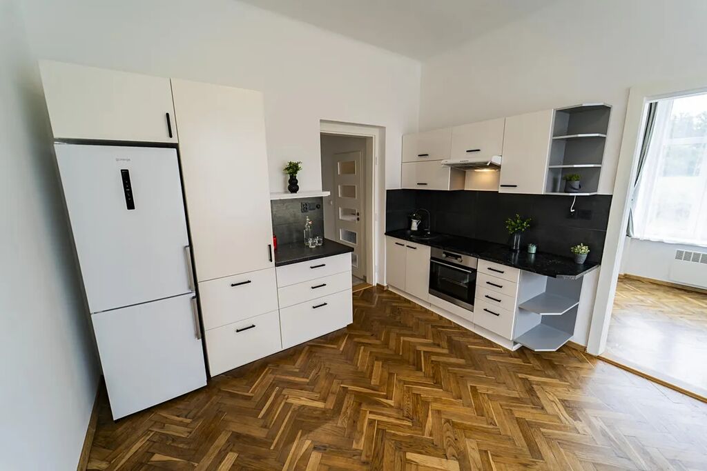Nabízíme ke koupi krásný byt o dispozici 2+kk a podlahové ploše 43 m, situovaný v prvním nadzemním podlaží původní prvorepublikové vily v malebné části Podhradí u Bakova nad Jizerou. Byt prošel v roce 2021 rozsáhlou rekonstrukcí byla kompletně obnovena elektroinstalace, rozvody vody i odpadů, zrenovovány původní dřevěné parkety, provedeny nové štuky a nainstalována moderní kuchyňská linka. Jednotka působí vzdušně, světle a je připravená k okamžitému nastěhování.