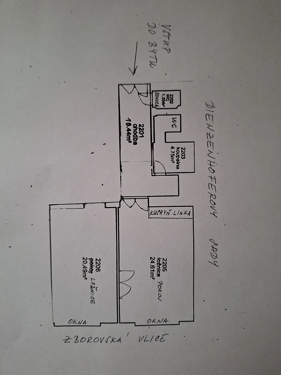 Nabízíme k pronájmu byt cca 62 m2 ve 4. patře činžovního domu na adrese: Dienzenhoferovy sady 1102/1, Praha 5, 150 00, Smíchov.