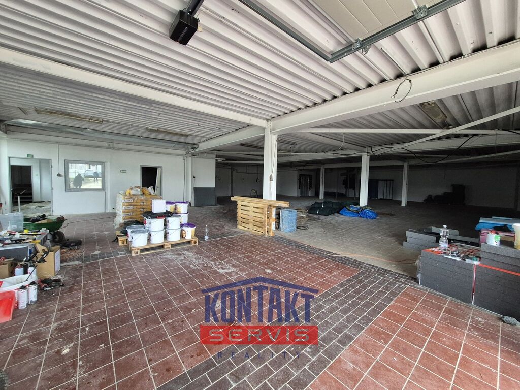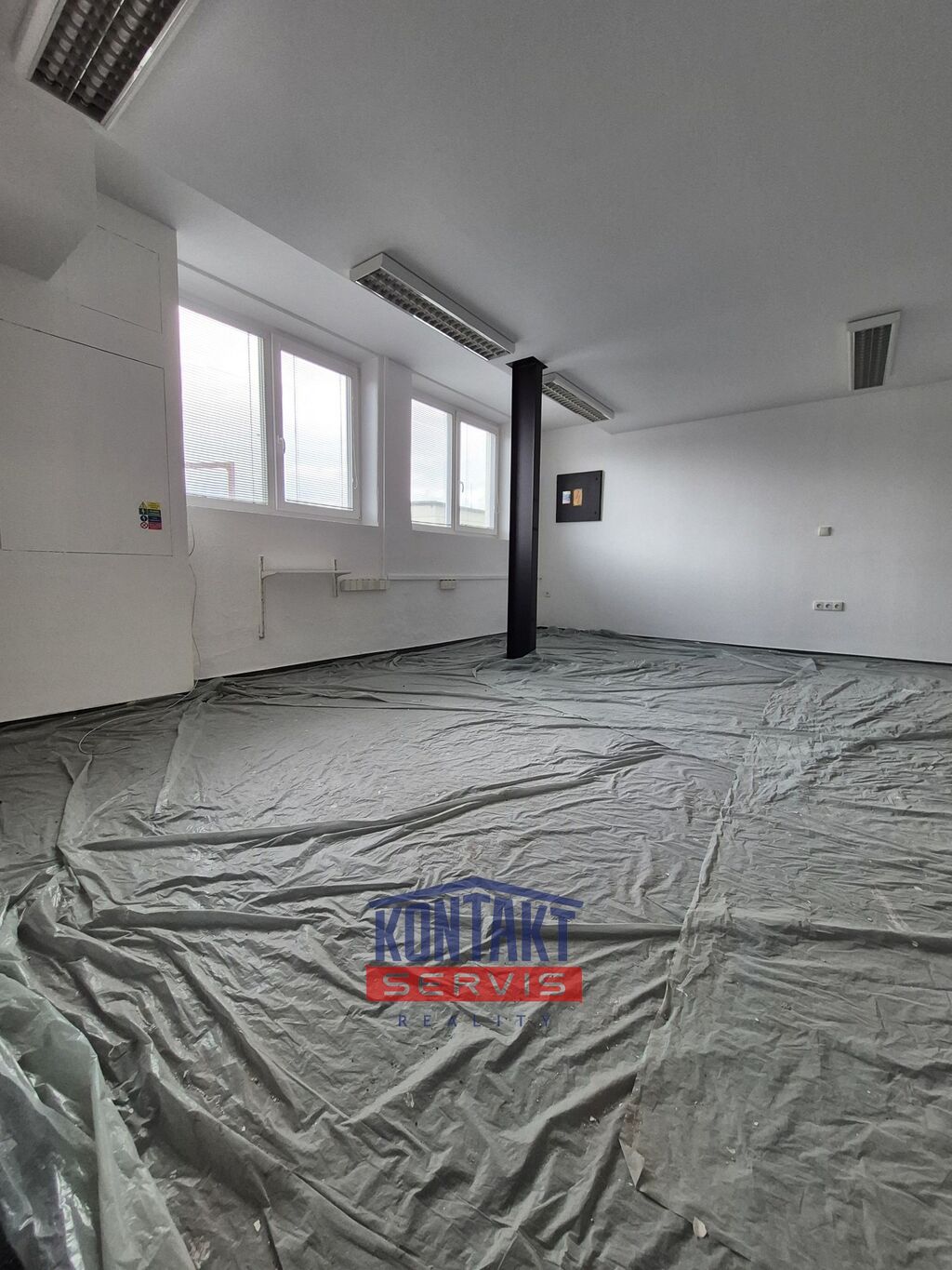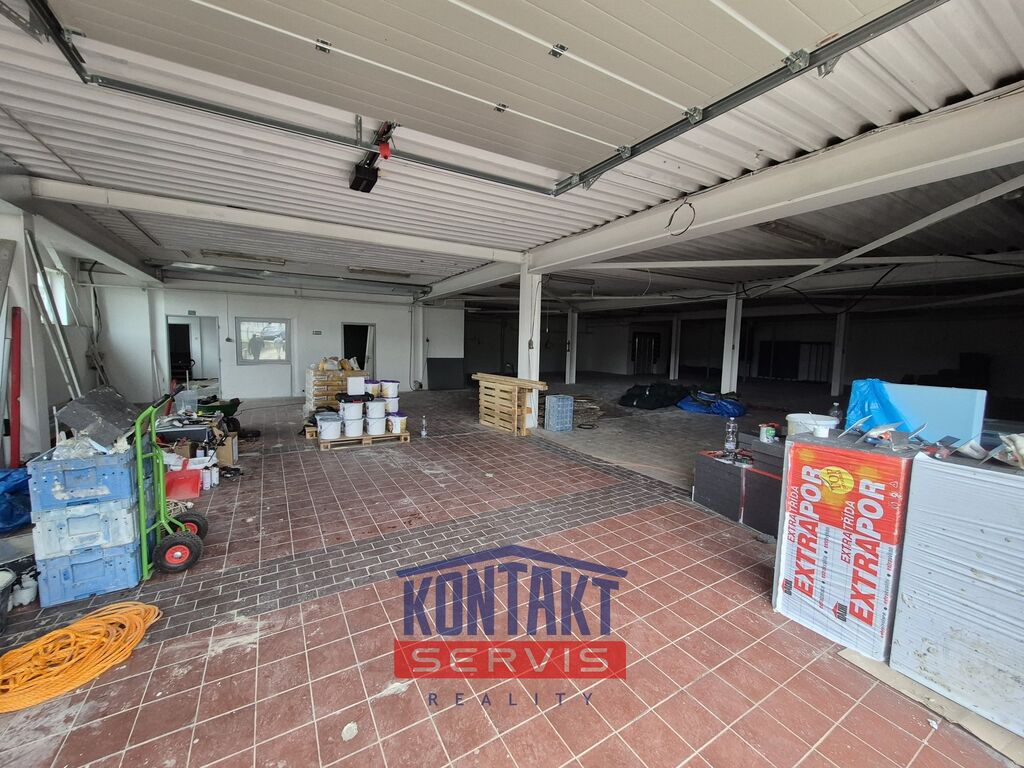 Objekt 2: Prostorná plocha 424 m² vhodná pro větší výrobu nebo skladování. Kancelářské prostory s kobercem