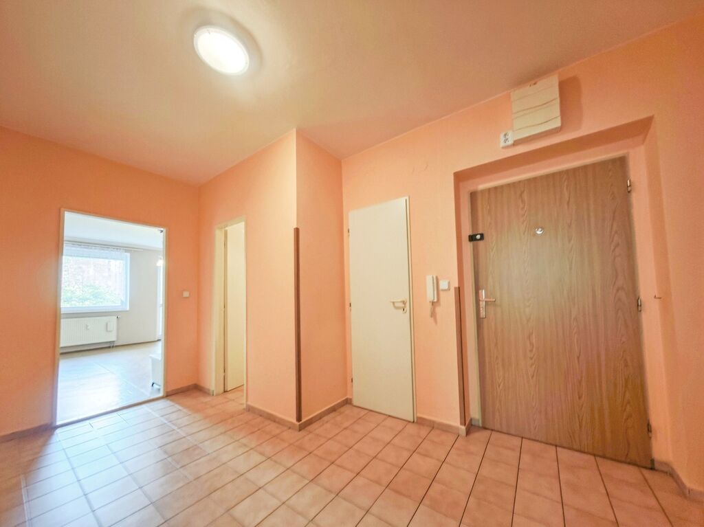 Po vstupu prostorná předsíň s úložným potenciálem. Z ní samostatné vstupy do obývacího pokoje s kuchyňským koutem, pokoje, ložnice, koupelny a na samostatné WC. Z obývacího pokoje je vstup na balkon s příjemným výhledem. K bytu náleží sklepní kóje. Ideální dispoziční řešení pro pár, jednotlivce nebo rodinu, která ocení logické členění a úložné možnosti.