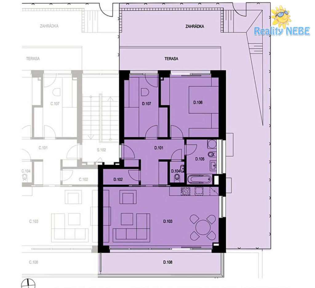 Nabízíme k pronájmu luxusní byt 3+kk o velikosti 80m2 s balkonem 11m, terasou 10m a zahradou 70m (ve 2/3NP) novostavby ve Schwarzové ulici, Praha - Řepy.