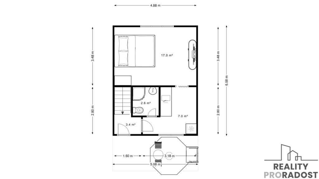 Vytápění elektrické přímotopy náklady 2000,-Kč/měs., voda vodovodní řád 600,- Kč/měs., odpad do kanalizace (náklady jsou při využívání na krátkodobé pronájmy). Sklep byl posledních 8 let krátkodobě pronajímán výnos 250 tis. ročně, majitel rád předá všechny kontakty. Klienti byli vždy spokojeni a rádi se vrací. Sezona březen až konec října.