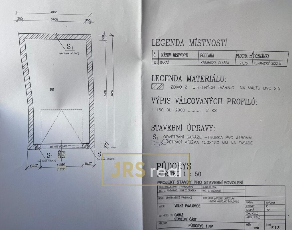 Ve výhradním zastoupení majitele nabízíme k prodeji dvoupodlažní garáž se sedlovou střechou, která se nachází v obci Velké Pavlovice. Garáž stojí na vlastním pozemku o výměře 28 m² a její vnitřní plocha činí přibližně 22 m². Součástí garáže je podkroví, které může sloužit jako další úložný prostor. Garáž je ideální jako bezpečné a pohodlné místo pro parkování vozidla, skladovací prostory nebo jako investice. Přístup ke garáži je z obecní komunikace skrze dálkově ovládaná sekční vrata. Pokud máte zájem o více informací nebo si přejete domluvit prohlídku, kontaktujte makléře.