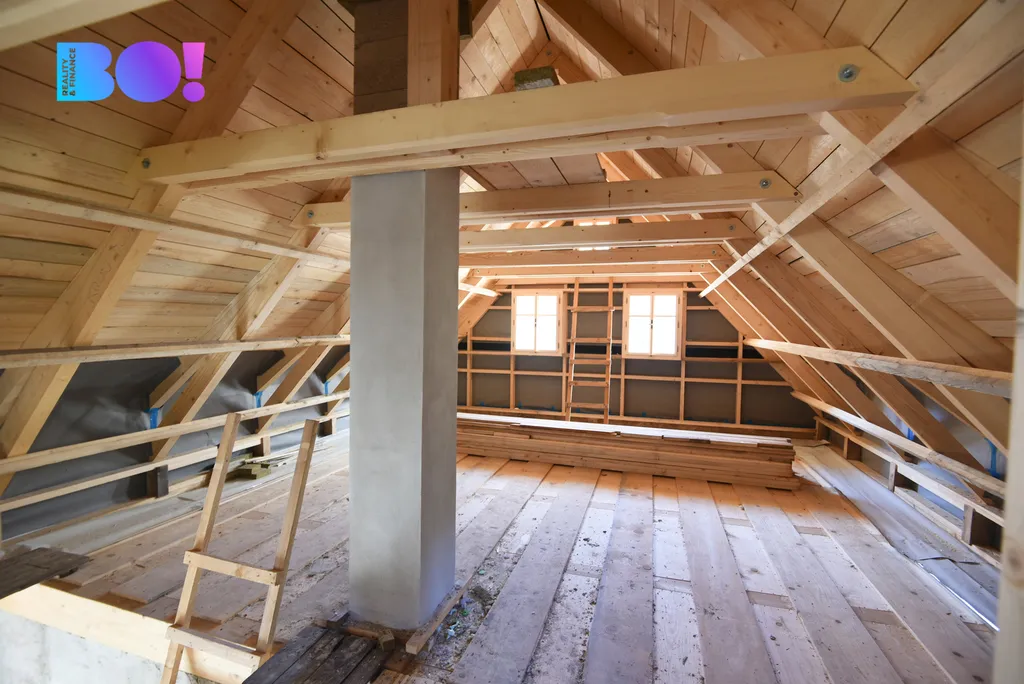 Chalupa je ve fázi hrubé stavby s osazenými kastlovými okny s vakuovanými skly a eurookny ve zděných a neroubených částech chalupy. V případě zájmu zajistíme dokončení stavby dle Vašeho požadavku.