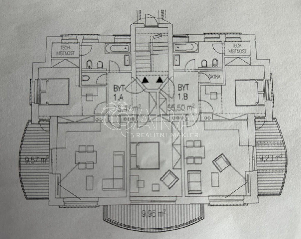 Jedna terasa je přístupná z ložnice, druhá z obývacího pokoje z kterých je z hezký výhled do okolí.