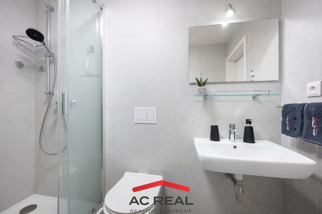 Byt je vybaven praktickými prvky pro komfortní bydlení: podlahové vytápění zajišťuje příjemnou teplotu po celý rok, elektricky ovládané venkovní žaluzie přinášejí soukromí, účinné stínění a zároveň zvyšují klid v interiéru díky tlumení hluku. K dispozici je pračka a ohřev vody zajišťuje elektrický akumulační bojler o objemu cca 80 l. Koupelna se sprchovým koutem a WC je řešena v moderním, čistém stylu. Celkově jde o krásný, světlý byt, který ocení jak jednotlivci a páry, tak investoři hledající nemovitost s výbornou pronajímatelností-díky zanechanému vybavení je připraven k okamžitému užívání.