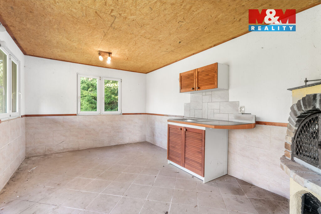 Zahradní domek, dvojgaráž s dílnou a úložnými prostorami, výborná dostupnost do města i na dálnici D8, ...