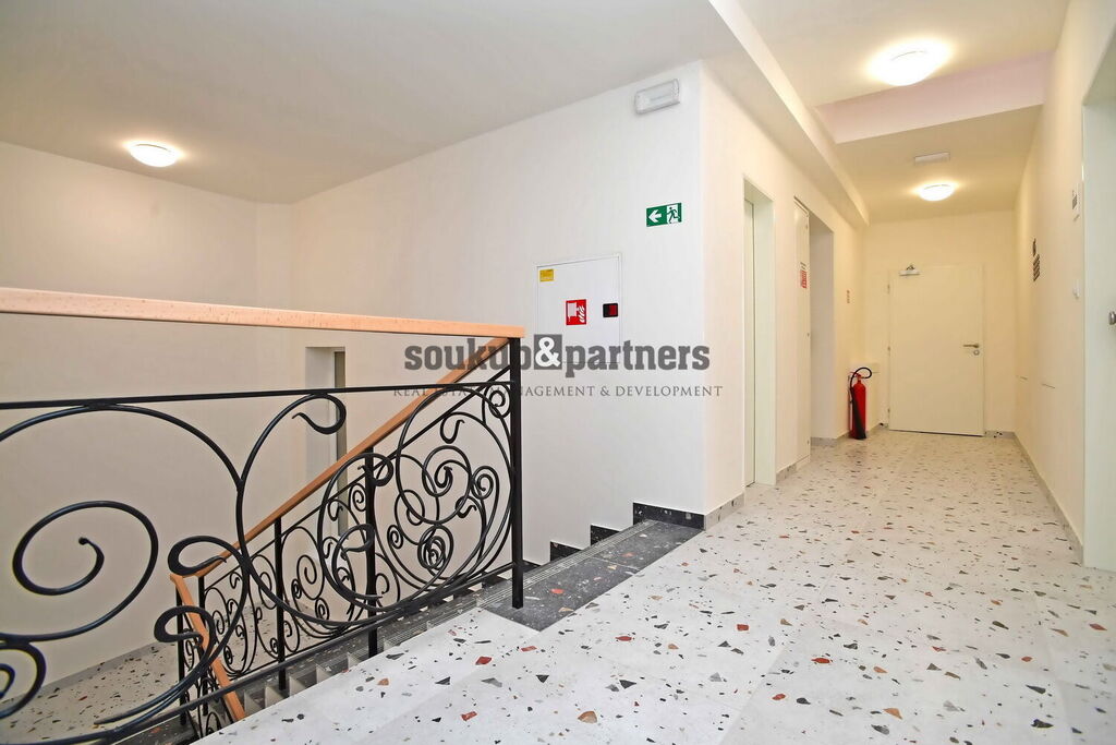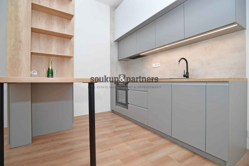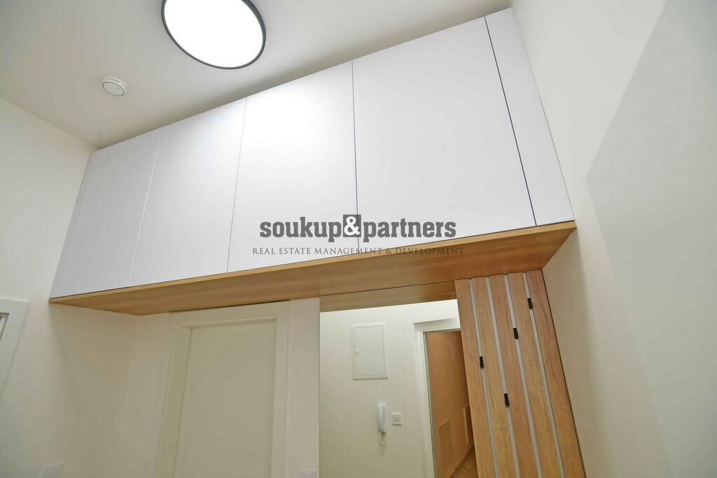 Apartmán je po kompletní rekonstrukci – nová okna, bezbariérová koupelna s otevřeným sprchovým koutem, WC, opěrné madla, dřevěné podlahy, dlažba, nové rozvody elektřiny, vody a odpadu. V bytě je nová kuchyňská linka včetně vestavěných spotřebičů - lednice, sklokeramická deska, horkovzdušná trouba, odsavač par, myčka, jídelní stůl. Dále jsou v bytě vestavěné skříně v předsíni, botník s úložným prostorem, TV stolek a noční stolky. K bytu náleží prostorný sklep. Vytápění a teplá voda zajištěna vlastní plynovou kotelnou v domě.