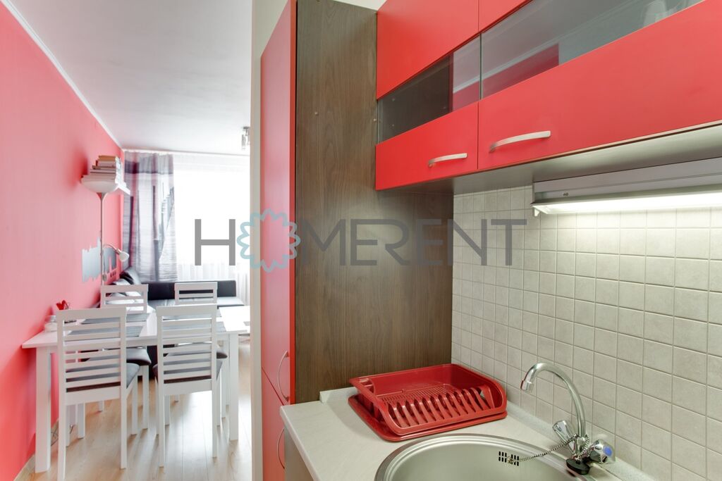 Byt je kompletně zařízený a připravený k nastěhování. Dispozici tvoří obývací pokoj s kuchyňským a jídelním koutem, samostatná ložnice s dostatkem úložného prostoru a koupelna se sprchovým koutem. Další úložné prostory nabízí i chodba. Kuchyně je vybavena všemi základními spotřebiči, včetně lednice, trouby a varné desky.