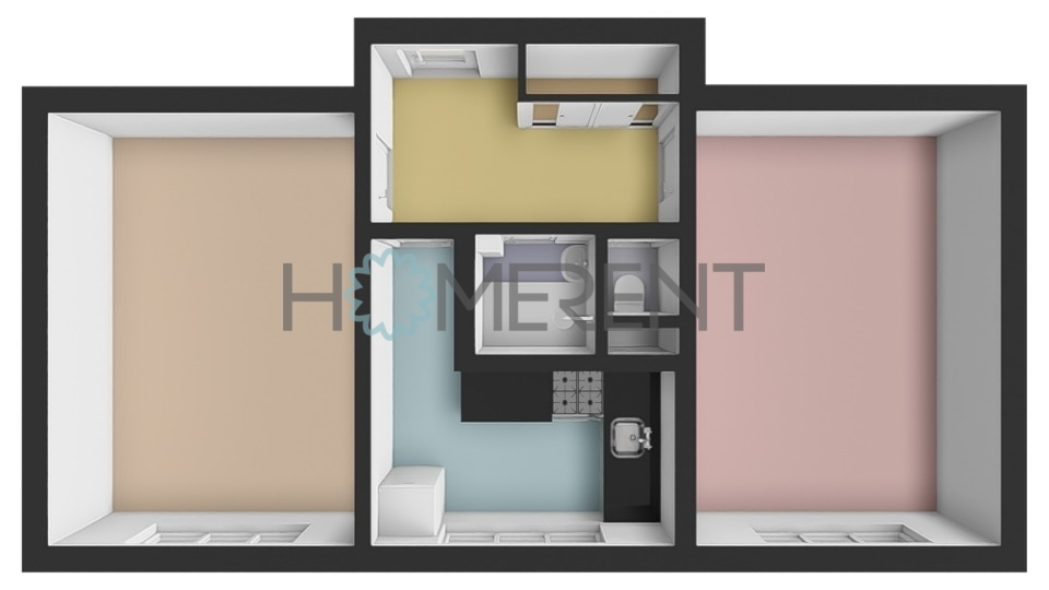 Byt tvoří dvě samostatné místnosti – hlavní ložnice a druhý pokoj, který může sloužit jako další ložnice nebo obývací pokoj podle potřeby. Obě místnosti nabízejí dostatek úložného prostoru. Byt působí příjemně prosvětleně a je orientován na jih.