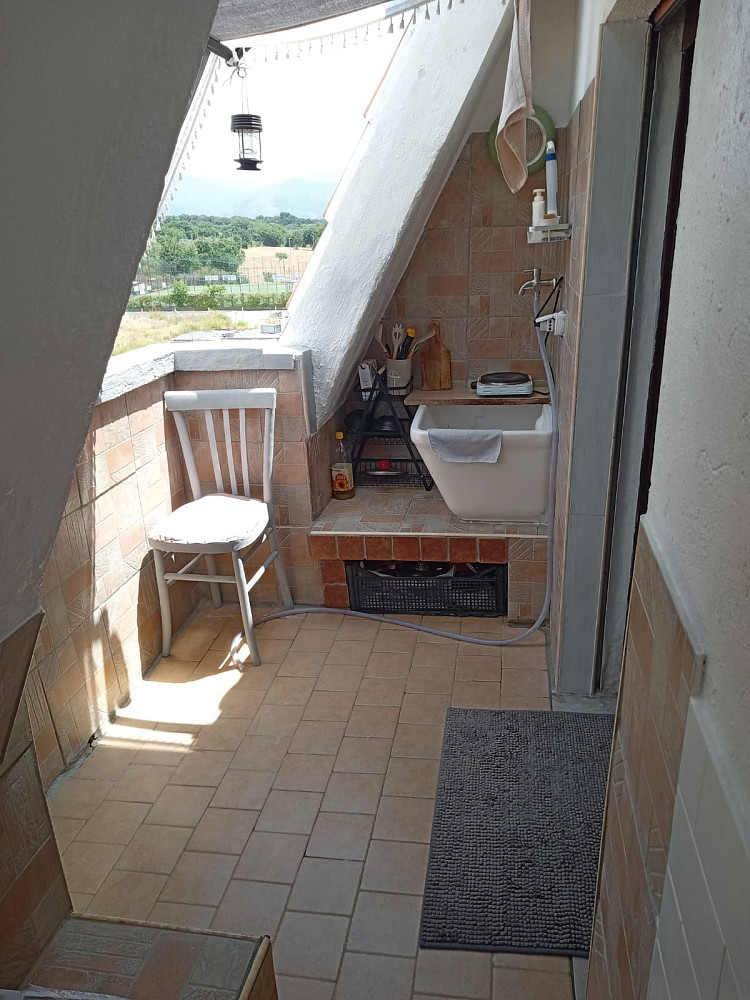 Tento apartmán v centru Scalea v Via Pitagora, prošel celkovou rekonstrukcí. Nachází se ve čtvrtém patře. V domě je výtah. Pěkný, opravený balkon s výhledem na hory láká k posezení. Vchod na balkon je z obou pokojů.