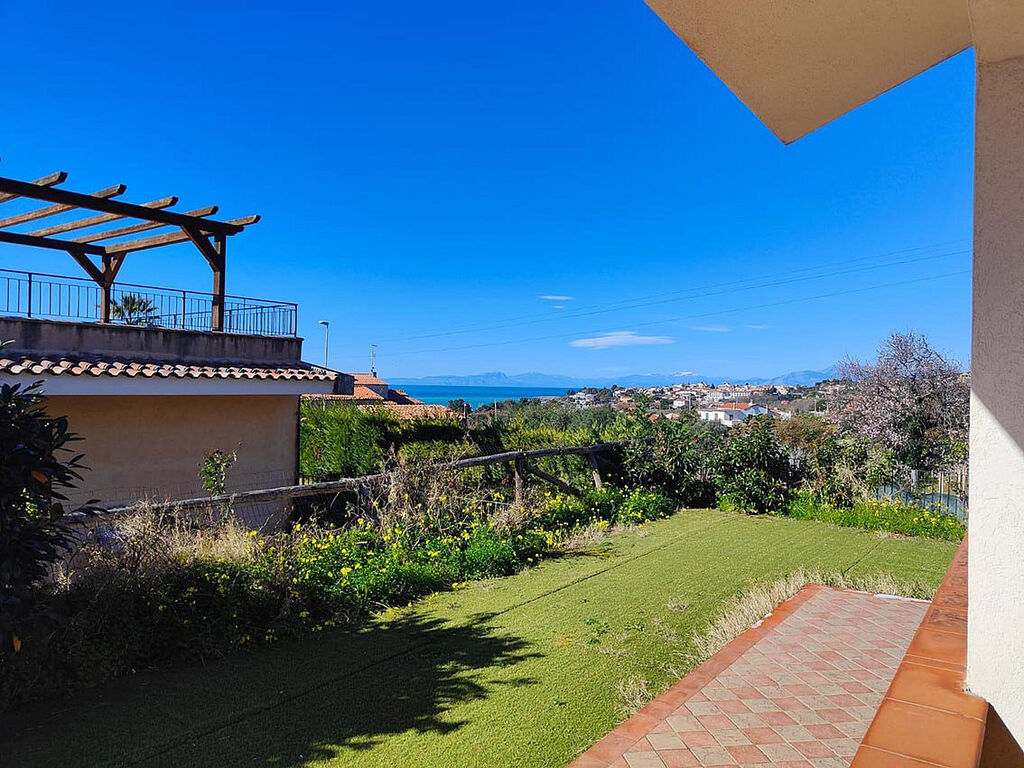 Zahrada s výhledem na moře a prostorná veranda je ideální pro venkovní relaxaci.