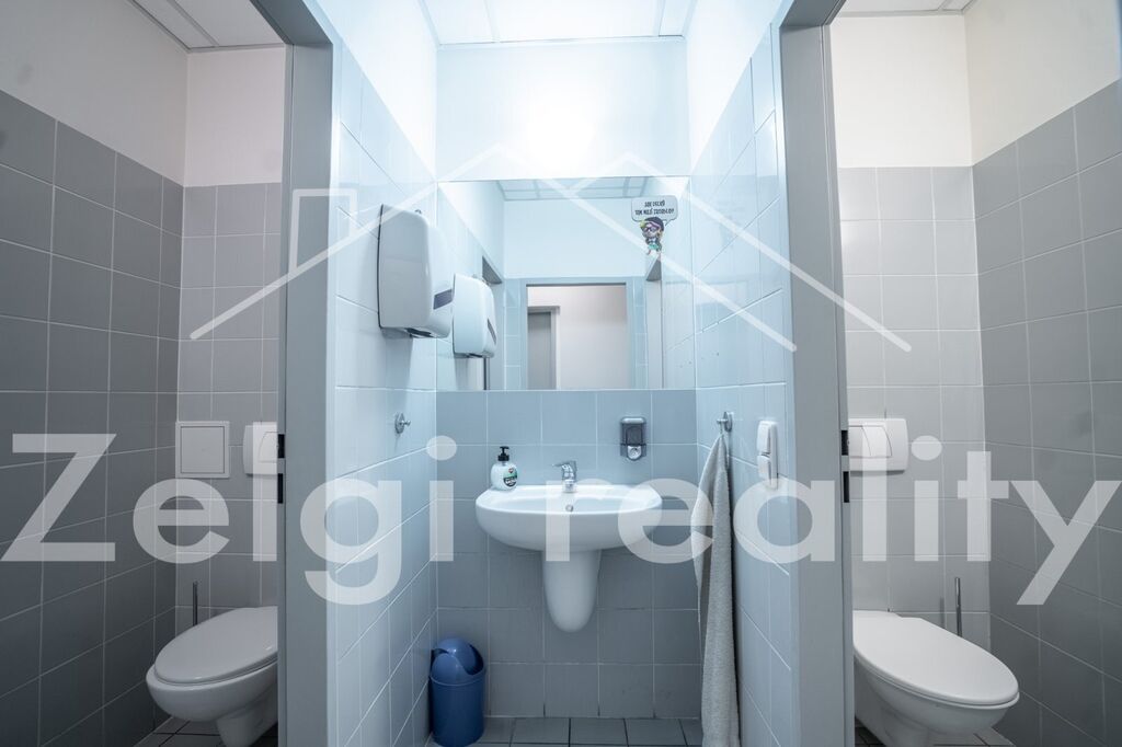 Součástí prostor je kompletní zázemí, které zahrnuje sociální zařízení pro personál, technickou místnost, serverovnu a trezor.