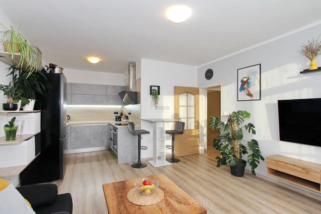 Exkluzivně nabízíme pronájem zařízeného bytu 2+kk 54 m2 s balkonem 12 m2 a parkovacím stáním v novostavbě z roku 2007, Praha 9 Vysočany, ulice Pod Harfou.