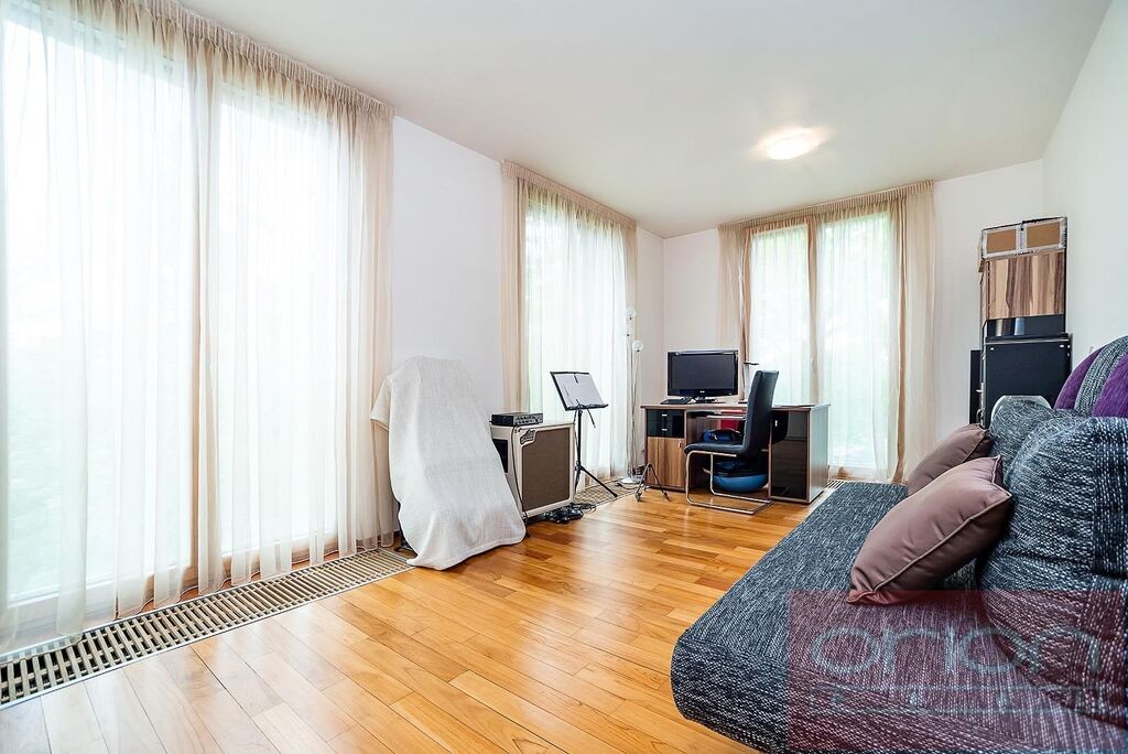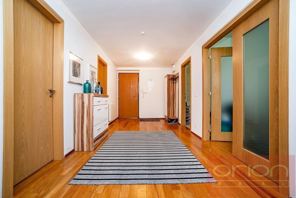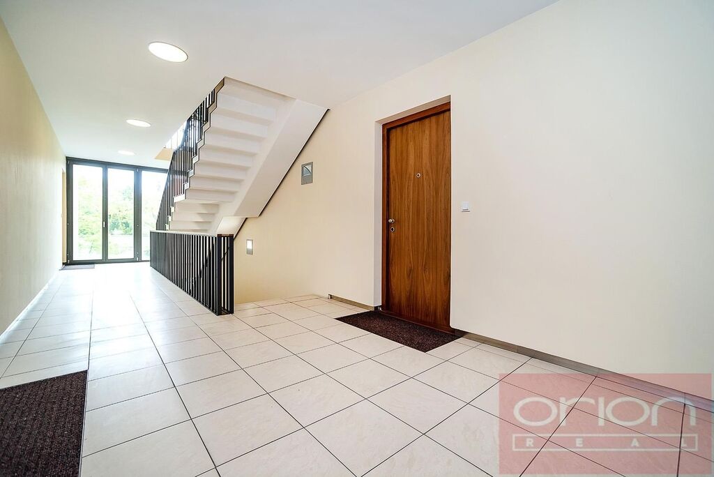 Nabízíme k pronájmu luxusní byt 3+1 s terasou v 1. patře rezidenční vily ve vyhledávané lokalitě Praha 6 - Ořechovka. Nezařízený byt má celkovou plochu 124 m2 a nabízí velkou vstupní halu, prostorný obývací pokoj s jídelnou a vstupem na terasu, plně zařízenou kuchyň se vstupem na terasu, 2 ložnice, z toho jedna s vlastní koupelnou se sprchovým koutem a toaletou, druhá koupelna s vanou, sprchovým koutem a toaletou, samostatnou toaletu, technickou místnost. K vybavení bytu patří kvalitní dřevěné podlahy, vestavěné skříně, pračka, sušička, vytápěné podlahy v koupelnách, venkovní elektrické žaluzie, plynové topení, klimatizace, alarm, videotelefon. V ceně nájmu je jedno parkovací stání v podzemní garáži, druhé parkovací místo je možné pronajmout za extra cenu.