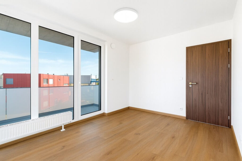 V koupelně se nachází vana, toaleta je oddělená. Z obývacího pokoje i ložnice je přímý vstup na prostornou terasu, která nabízí příjemné venkovní posezení. Součástí bude také vestavěná pračka se sušičkou.