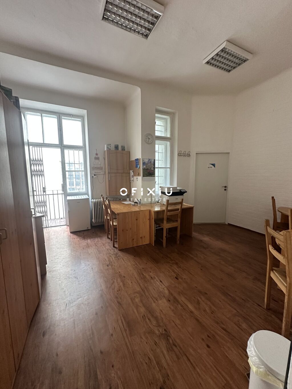 Nabízíme k pronájmu prostorné nebytové prostory o celkové výměře 193 m², které se nacházejí ve 2. patře domu na rohu ulic Kobližná a Kozí v samém centru Brna. Prostory jsou již více než 15 let využívány jako kanceláře, konkrétně jazyková škola. Ve druhém až šestém patře domu se nacházejí výhradně byty, přičemž tento jediný prostor je využíván k nebytovým účelům.