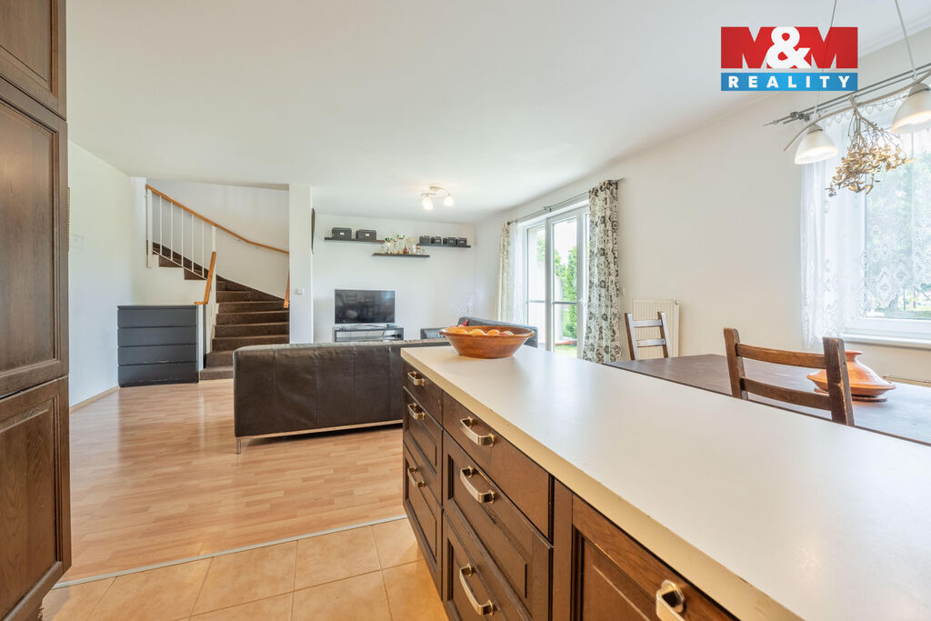 Nabízíme k prodeji řadový rodinný dům 5+kk z roku 2008 ve Velkých Přílepech, Praha-západ. Dům má celkovou plochu 175 m2 a plocha pozemku je 344 m2. K domu náleží nádvoří, prostorná garáž o ploše 18 m2 a zahrada o rozloze 174 m2. Ze zádveří vede vstup do garáže pro jedno auto a do pokoje s pěkným výhledem. V přízemí se dále nachází vstupní chodba, předsíň, obývací pokoj s kuchyňskou linkou a jídelnou, koupelna se sprchovým koutem, toaleta a komora. Z obývacího pokoje je vstup přes terasu na zahradu. V patře jsou dva dětské pokoje, velká koupelna s vanou, WC a dvěma umyvadly, šatna a hlavní ložnice se vstupem do vlastní koupelny s WC a sprchou. Vytápění a ohřev teplé vody je řešen pomocí plynového kotle. Na metro Bořislavka je to 17 minut hromadnou dopavou. Bydlení je ideální pro rodinu s dětmi, kdy všichni budou mít dostatek prostoru. Pokud si přejete bydlení blízko Prahy, ale zároveň v klidném venkovském prostředí, je tato nabídka ideální právě pro vás!