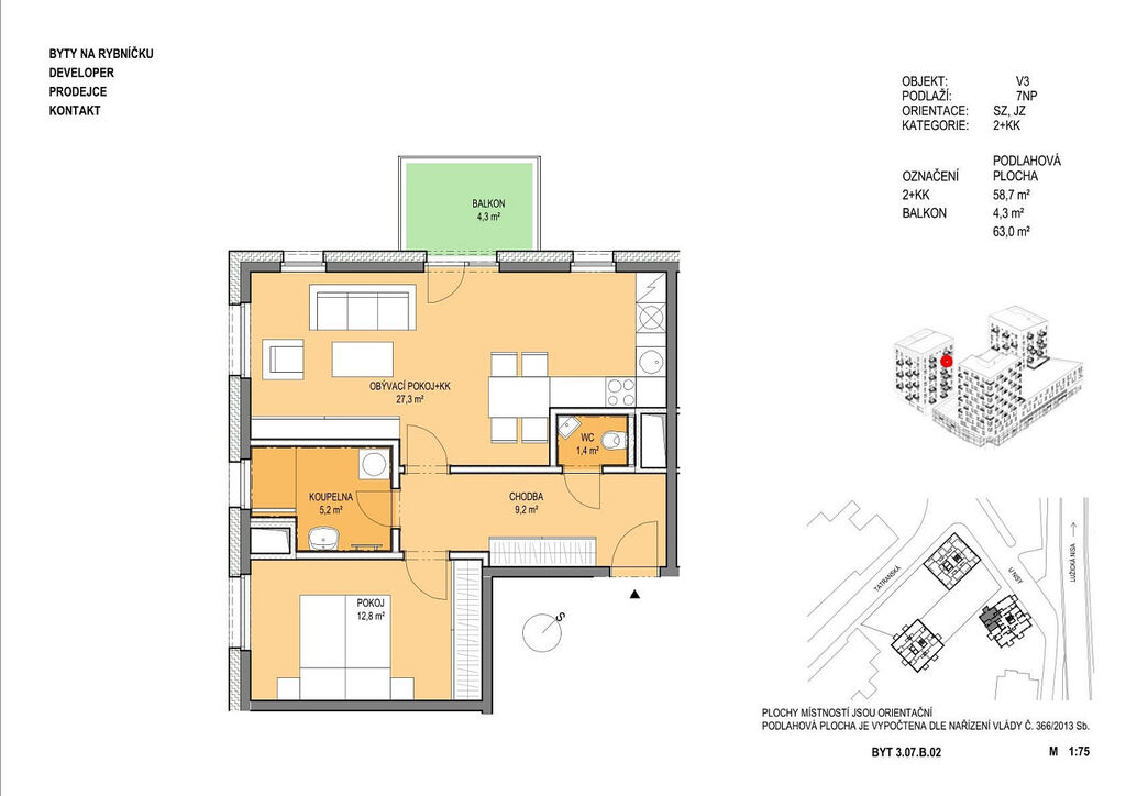 Pronájem bytu 2+kk s balkonem a parkovacím stáním – Liberec, ul. U Nisy