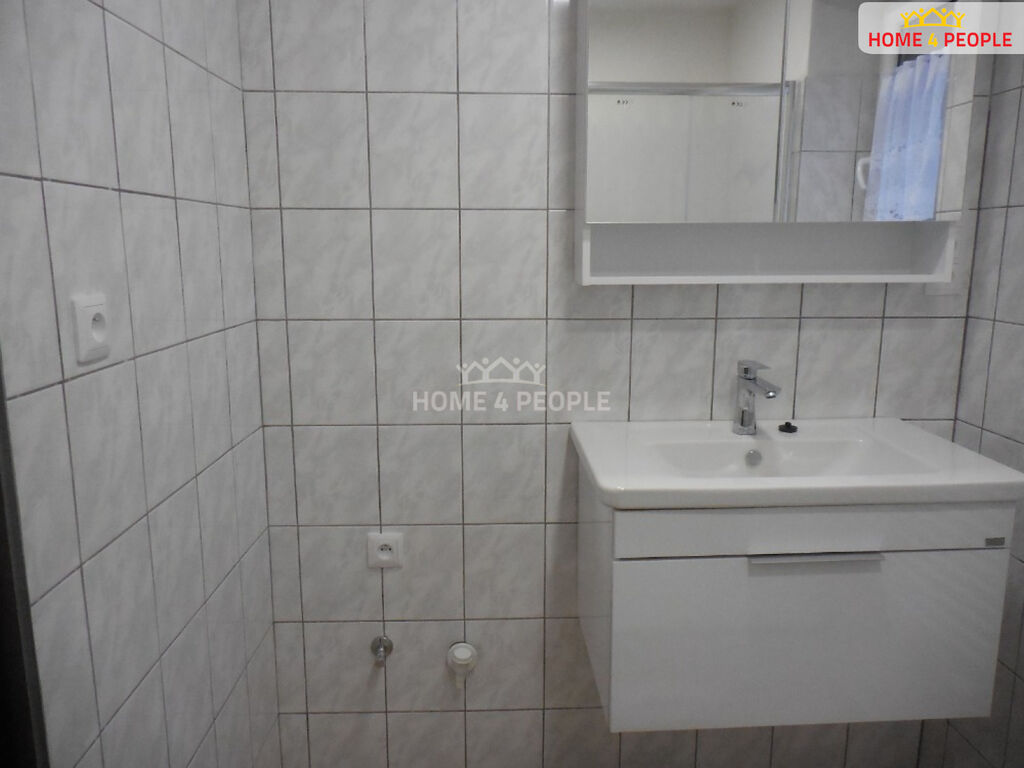 Zprostředkujeme Vám pronájem zajímavého velkého bytu 2+1 o rozloze 65 m², s balkonem a travnatou zahradou, v ul. U Ovčína, Dobříš. Byt se nachází ve zvýšeném přízemí, dispozičně se skládá z chodby, kuchyně, 2 samostatných pokojů, koupelny se sprchovým koutem a samostatného WC. Byt je po nedávno provedené rekonstrukci. K dispozici je také menší sklep. Zařízeno částečně: v kuchyni kuchyňská linka, elektr. sporák s troubou, dále předsíňová stěna, vestavěné skříně. Na podlahách PVC a dlažba. Vytápění zajištuje vlastní elektrokotel, který se nachází pod bytem v suterénu, včetně el. bojleru. Nájemné činí 14.620 Kč měsíčně, služby a poplatky pro 3 osoby jsou 3.380 Kč, celkem 18.000 Kč měsíčně. Elektřina se převádí na nájemníka. Vratná kauce 28.000 Kč, provize RK.