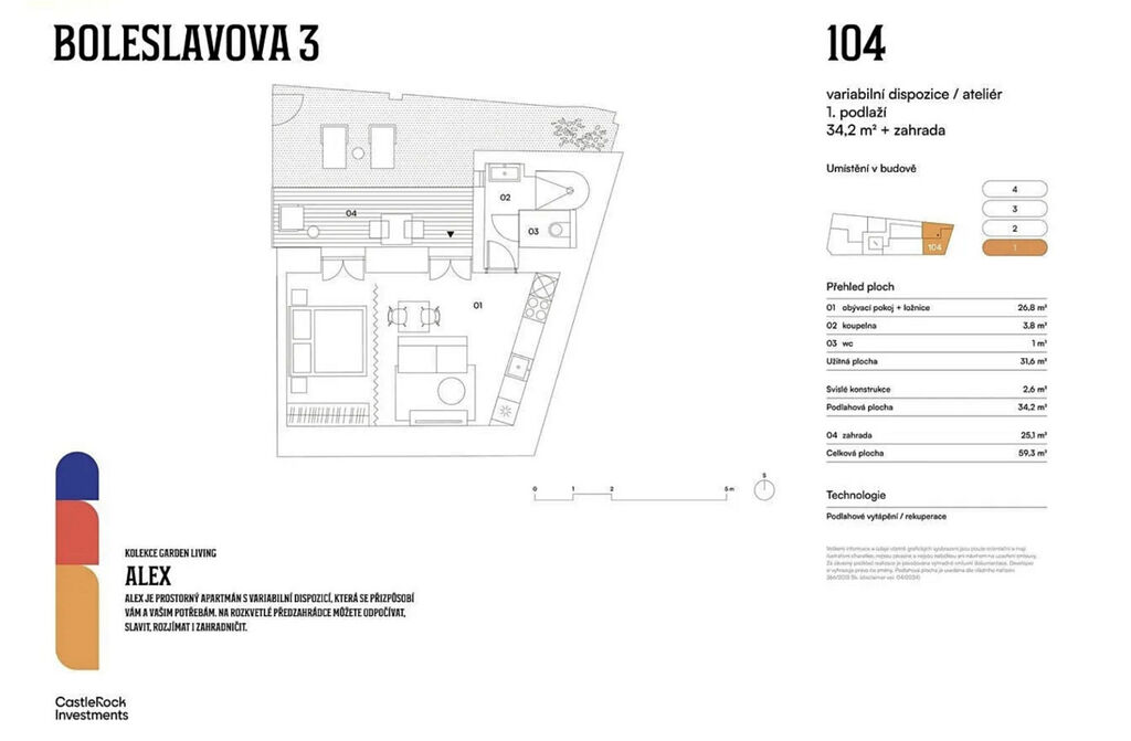 Nabízíme k dlouhodobému pronájmu moderní byt s předzahrádkou o celkové ploše 34,2 m² + předzahrádka 25 m². Jednotka se nachází v 1. nadzemním podlaží kompletně zrekonstruovaného butikového rezidenčního projektu v oblíbené lokalitě Praha 4 – Nusle, ulice Boleslavova.