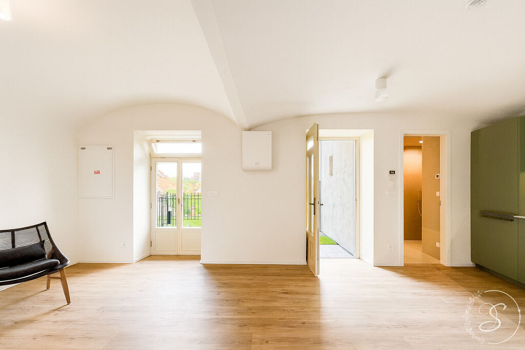 Byt nabízí flexibilní obytný prostor, který lze pohodlně rozdělit na obývací část a ložnici. Součástí je plně vybavená kuchyňská linka, koupelna se sprchovým koutem a samostatné WC. Podlahové vytápění a rekuperace zajišťují příjemné bydlení po celý rok. Výhodou je také prostorná předzahrádka o velikosti 25 m², ideální pro odpočinek, posezení či menší zahradnické aktivity.