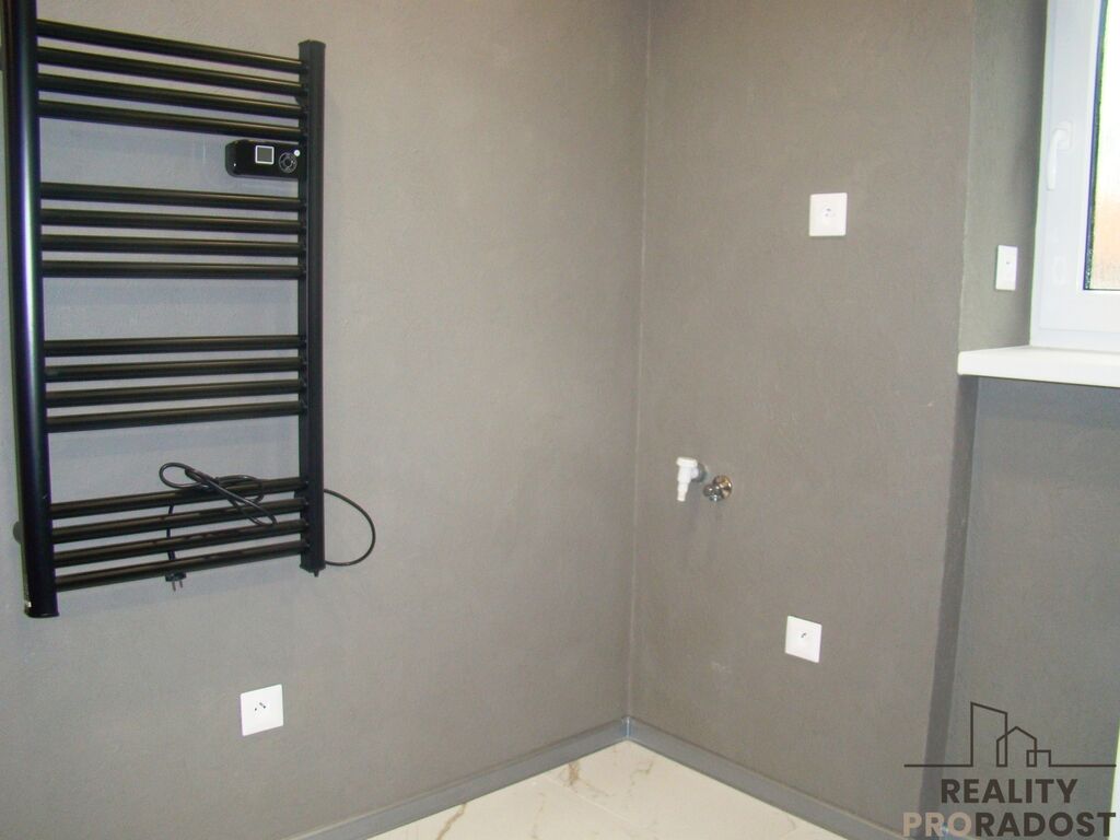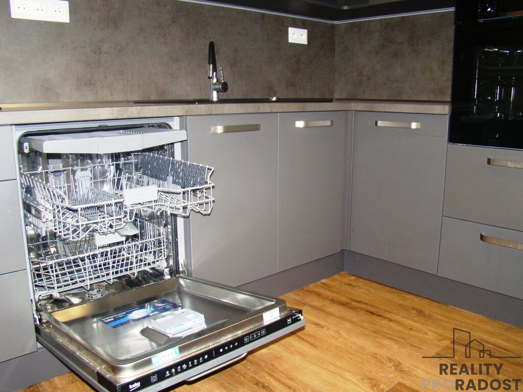 Je zde nová kuch. linka s kameninovým dřezem, vest. mikrovlnkou, horkovzdušnou troubou, myčkou, lednicí, mrazákem, digestoří a plynovými hořáky. Zbytek bytu je až na pár kusů nábytku nezařízený.