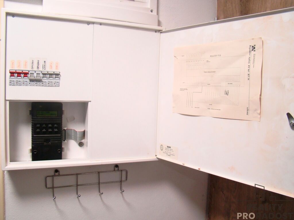 Je zde el. boiler (180 L), otopný el. žebřík v koupelně (spojené s WC), vana, ekoflexy (el. vytápění) a krbová kamínka schopná vytopit většinu bytu (vyjma koupelny). Díky el. vytápění je zde 20h sazba tzv. nočního (levnějšího) proudu.