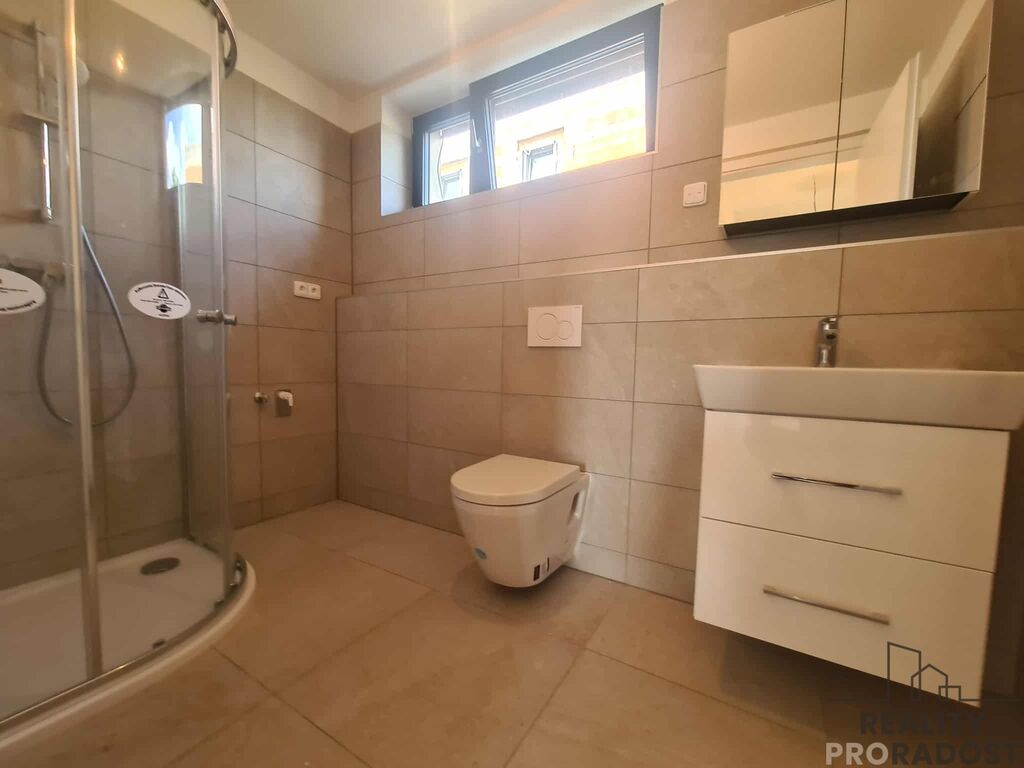vlastní sklep a je možné také využívat společnou kočárkárnu v přízemí budovy. K bytu náleží vlastní venkovní parkovací stání které je za 1.000Kč/měs.